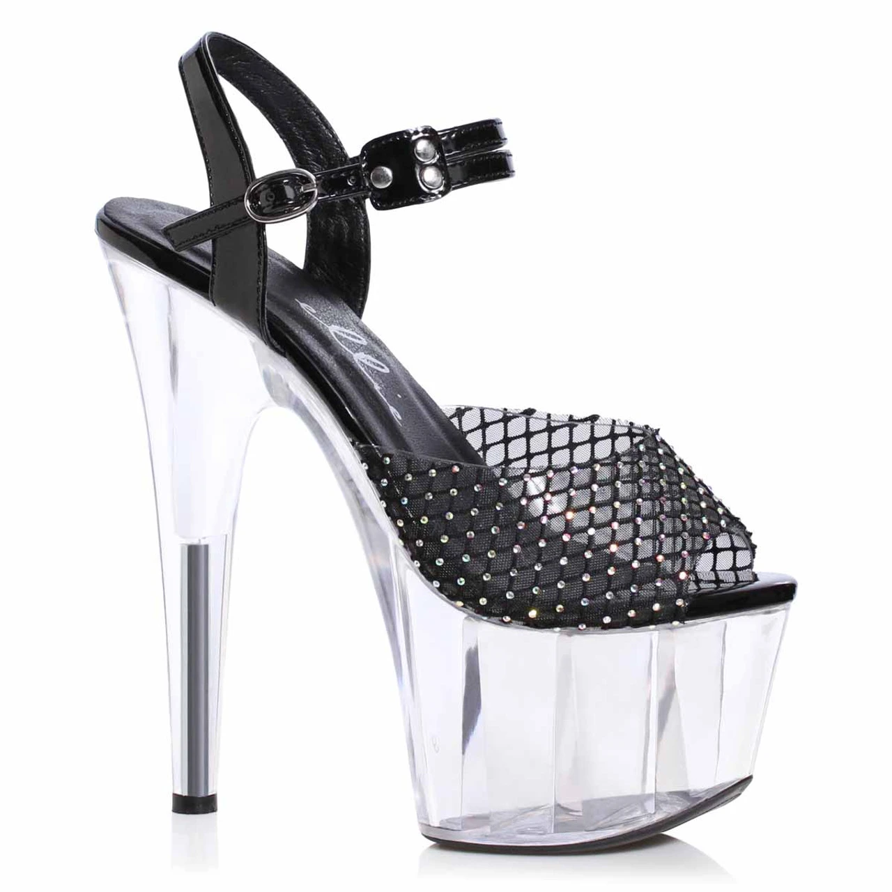 7 Inch Stiletto Heel Platform Sandal with Rhinestone Mesh Front Strap