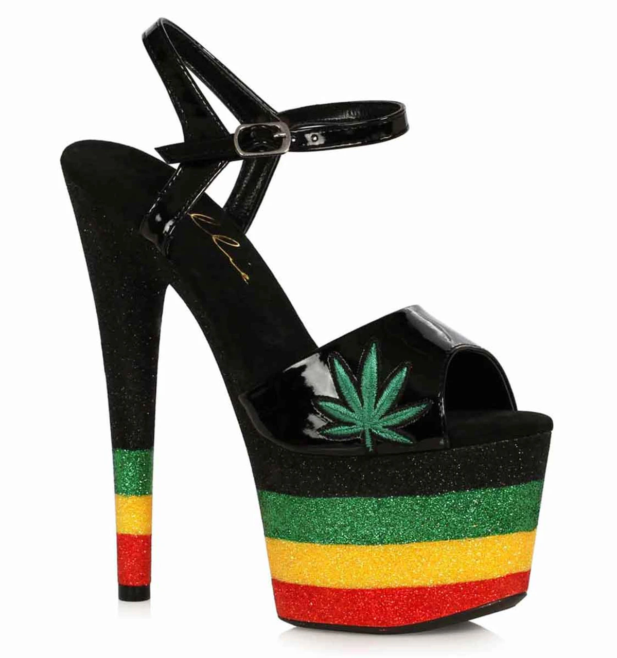 Approximately 7″ Stiletto with Glitter Platform And Marijuana Upper Detail