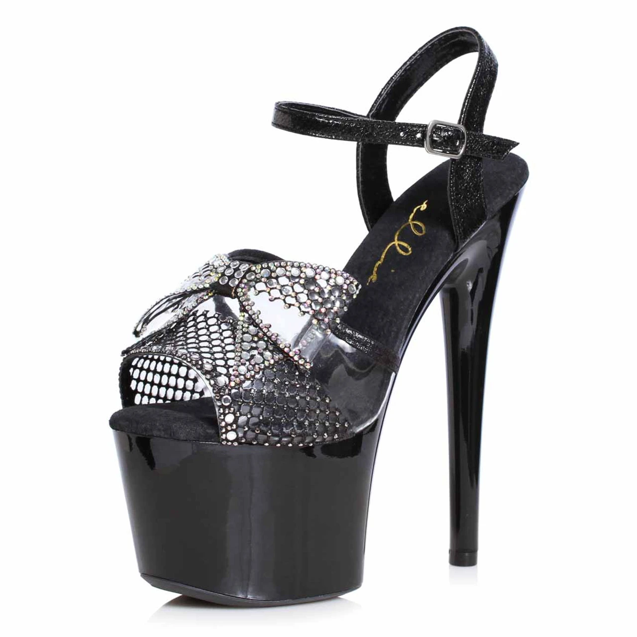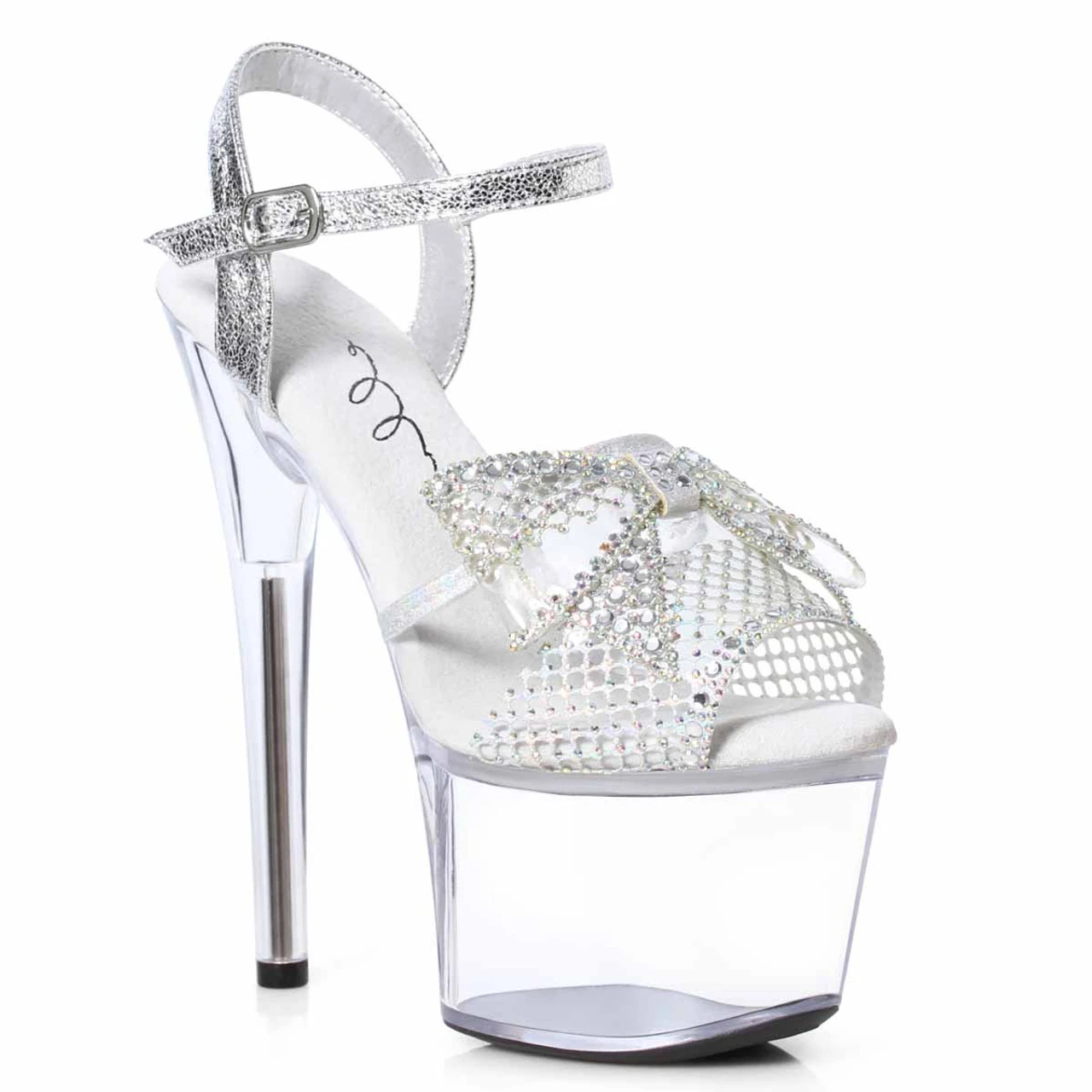 7 Inch Stiletto Heel Platform Ankle Strap Sandal With Rhinestone Bow