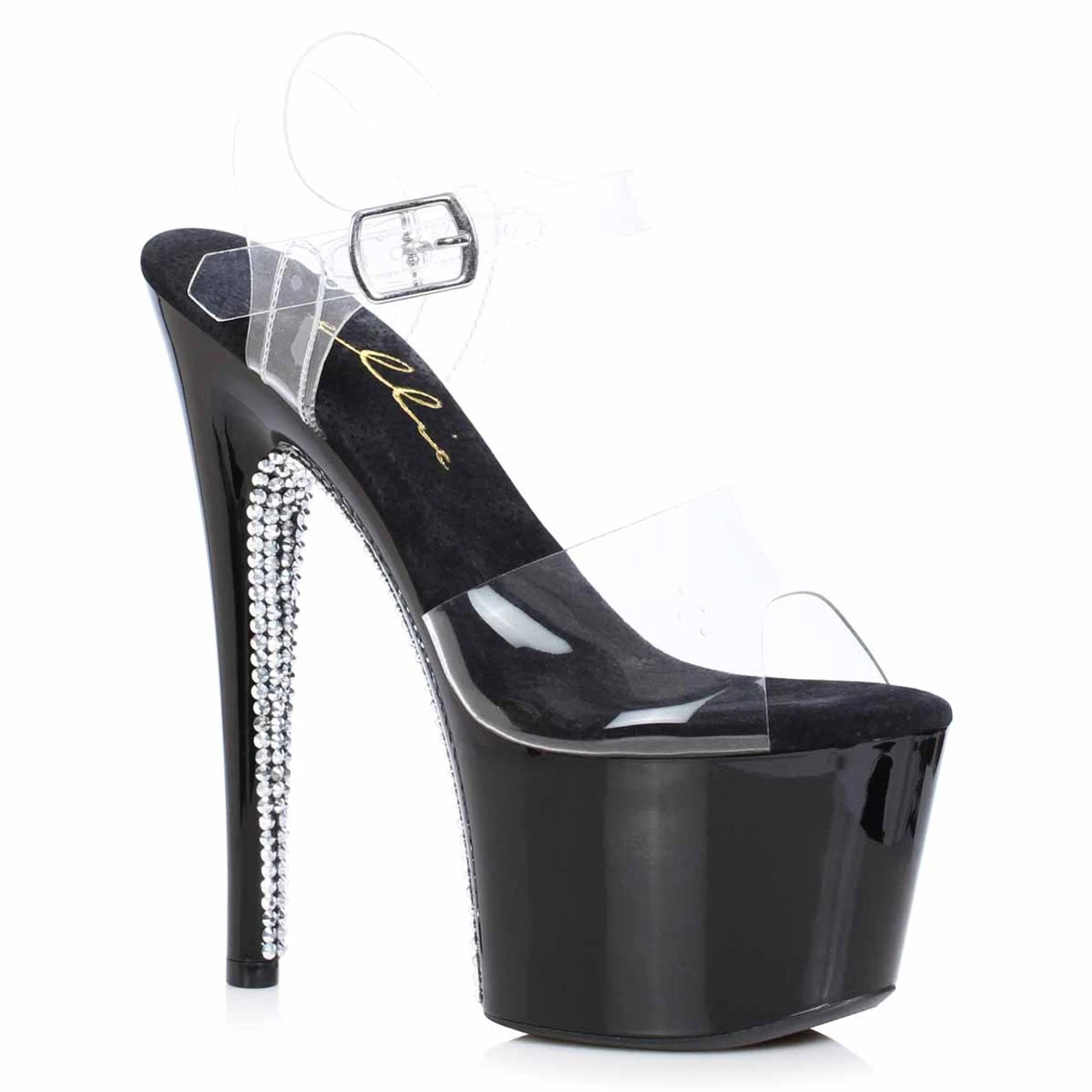 7 Inch Stiletto Heel With Rhinestones At Back of Platform Sandal