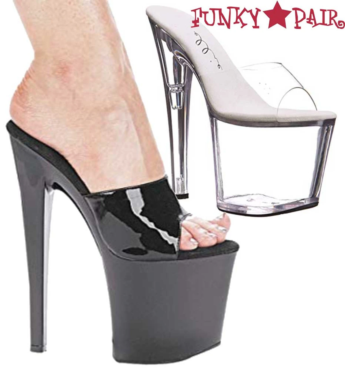 Step out in style with the 821-Vanity 8″ High Heel Mule Platform. Available in black and clear, you can make a statement wherever you go. An 8″ heel gives you the boost you need to exude confidence and charm. Be the center of attention.