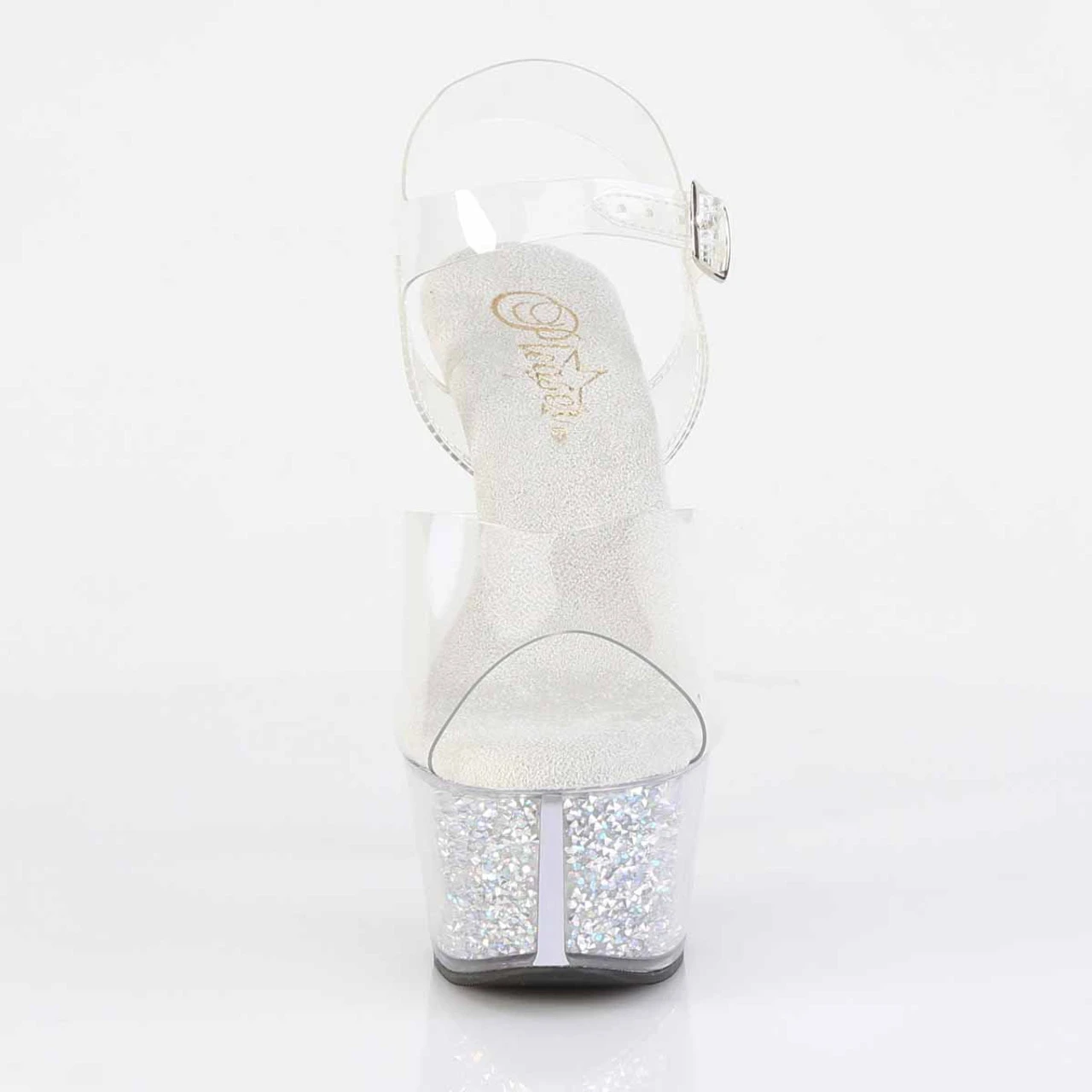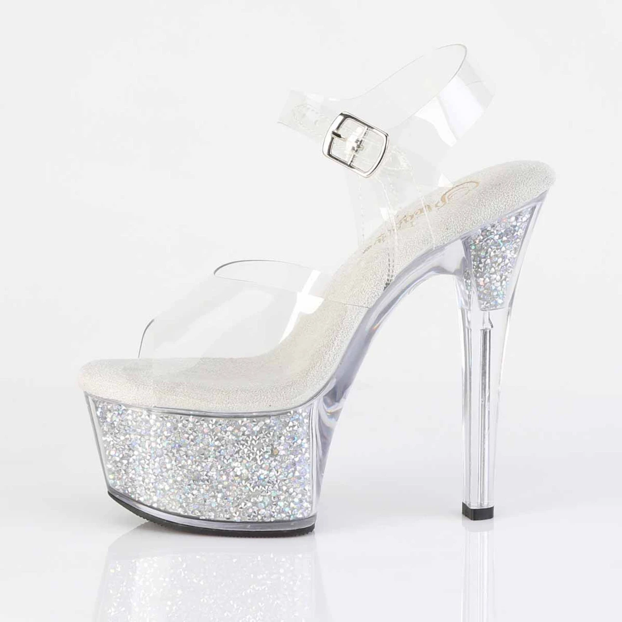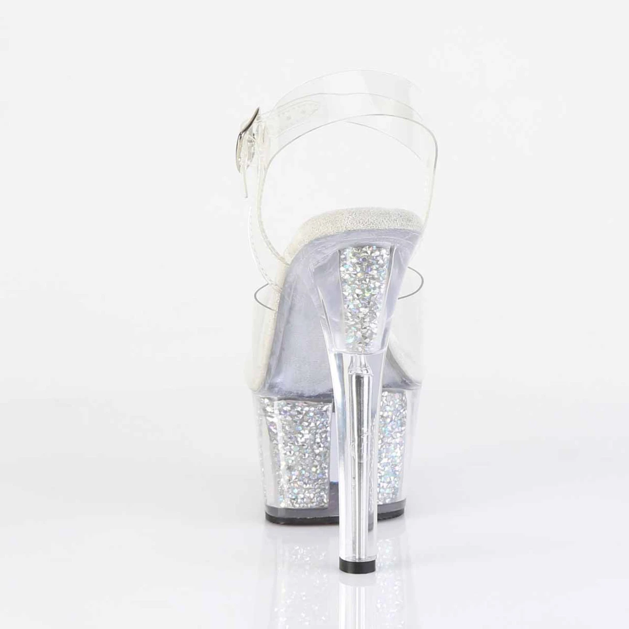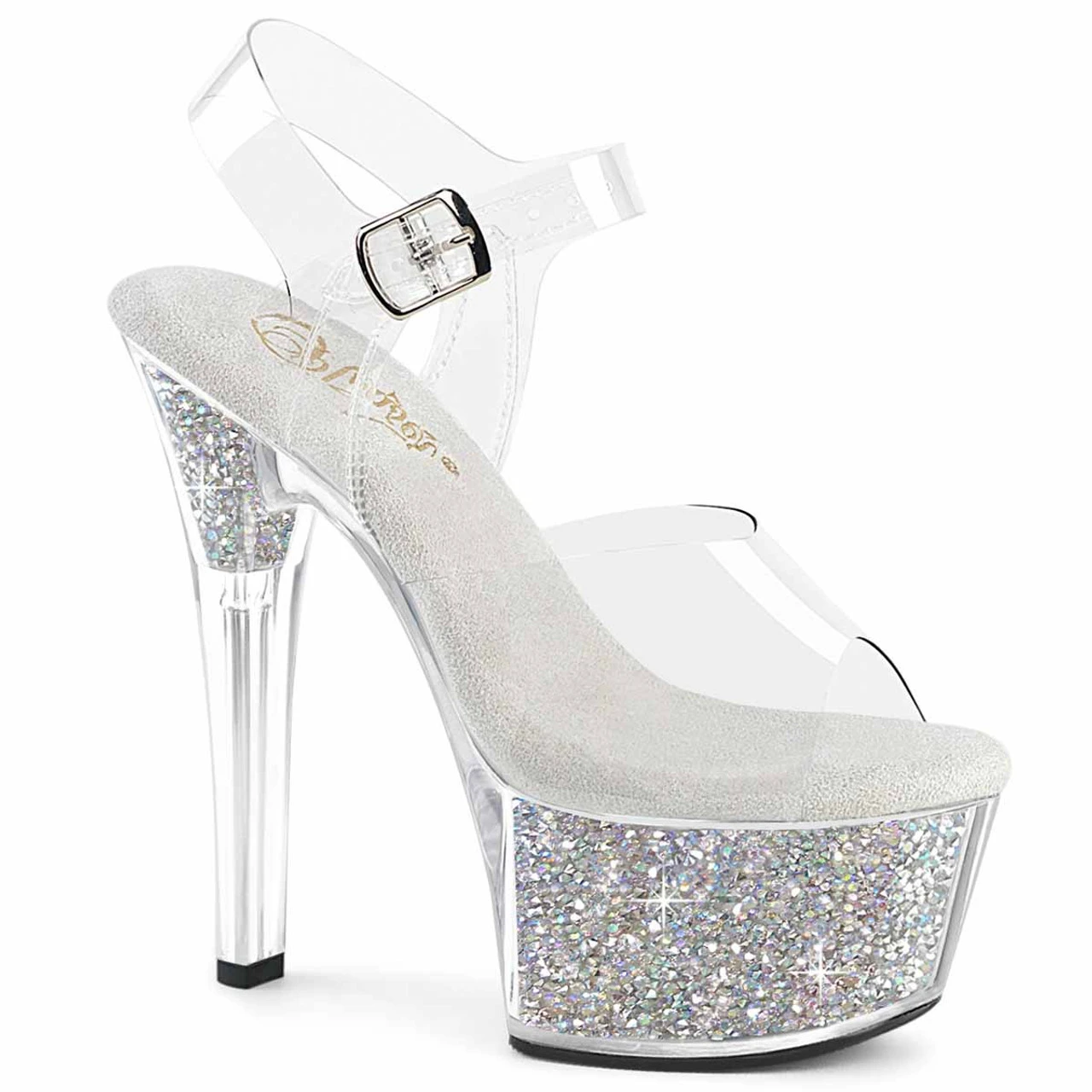 6″ (152mm) Heel, 2 1/4″ (57mm) Platform Ankle Strap Sandal Featuring AB Rhinestones Inserted in the Platform and Heel