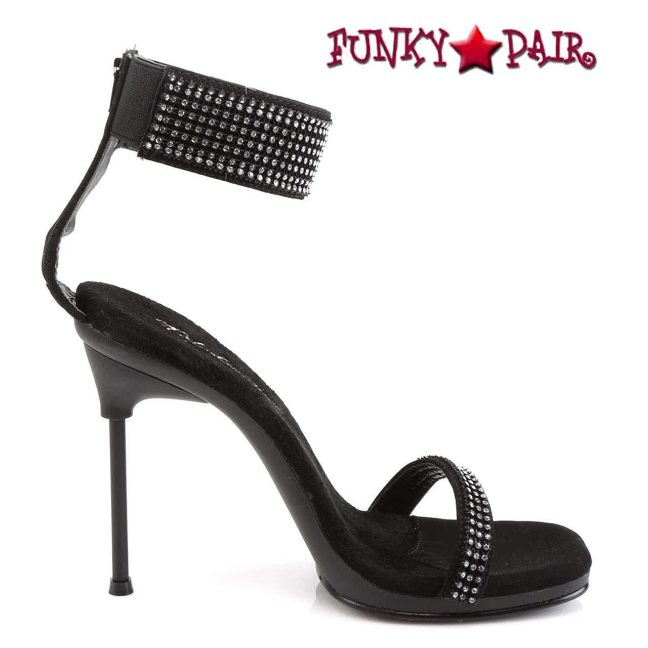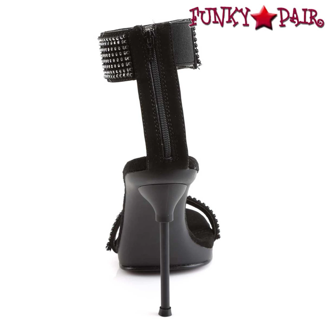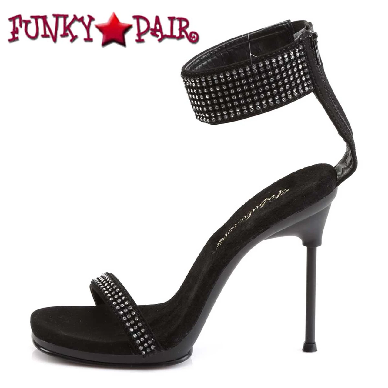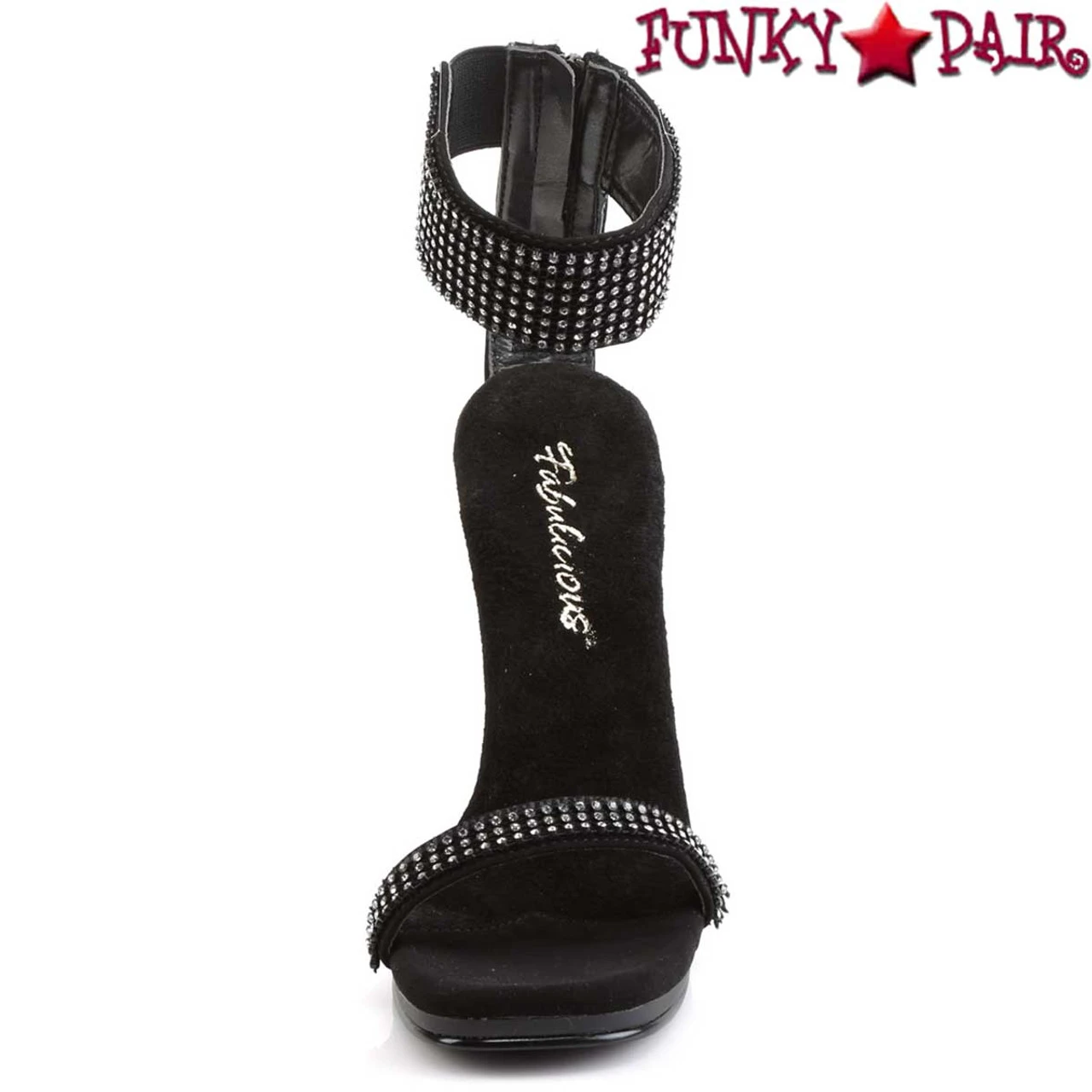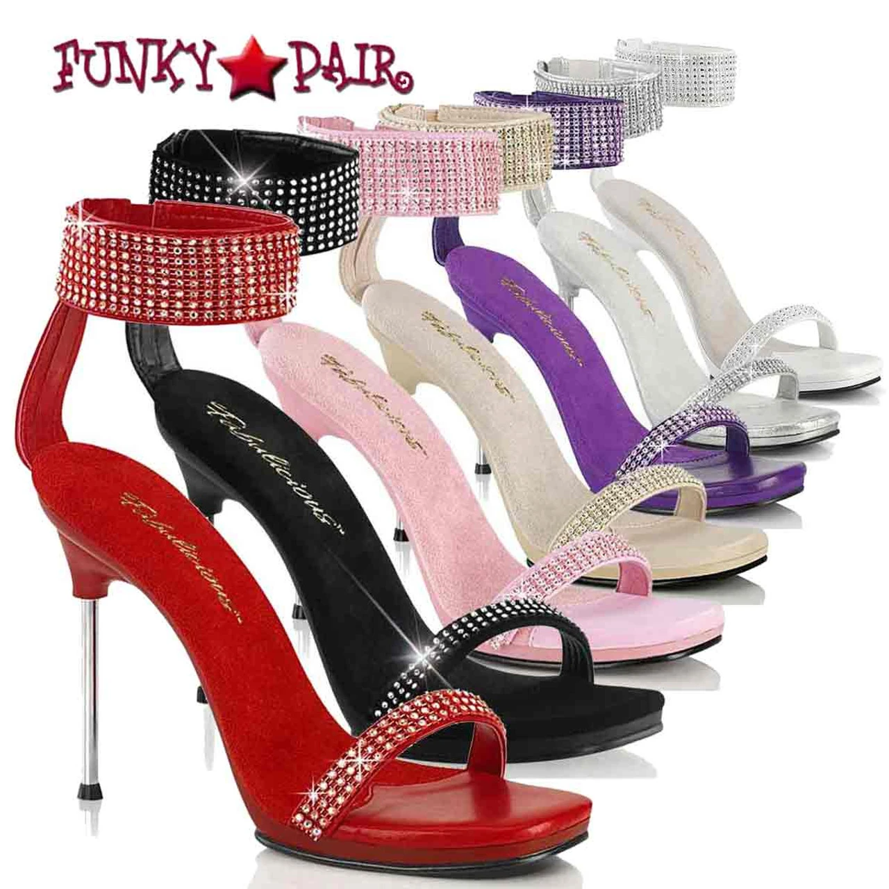 CHIC-40 The Chic 4.5 inch sandal from Pleaser is all about sex appeal. This true stiletto features rhinestone detailing to catch the light beautifully, while its zip-close, elasticized ankle strap allows for secure wear and quick, changes. Heel Height: Approx. 4 1/2” Tall. pointed steel tube heel. This sandal has an ankle cuff design lined with plenty of rhinestones. | Brand: Fabulicious