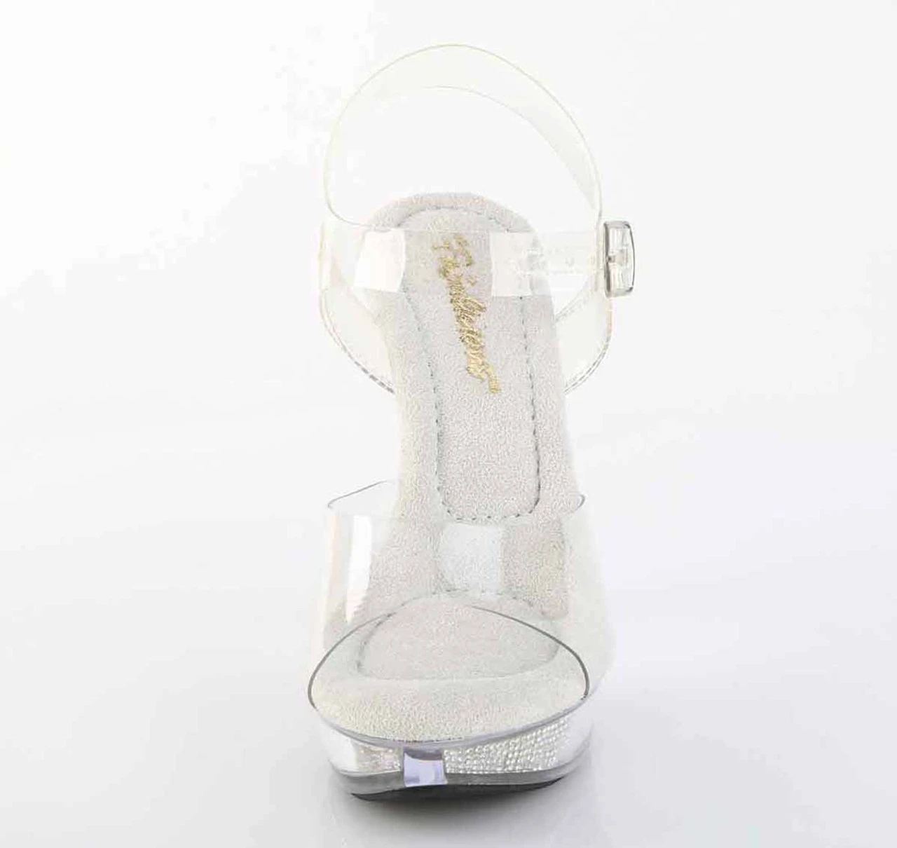 GLORY-508, 5″ Clear Comfort Width Ankle Strap Sandal By Fabulicious