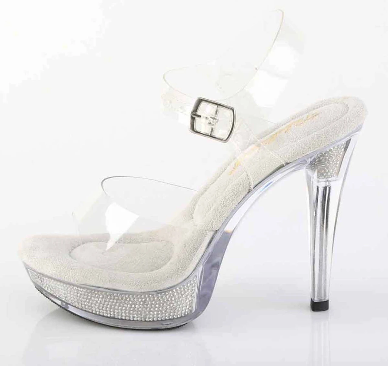 5″ (127mm) Heel, 1″ (25mm) Platfom Ankle Strap Sandal Featuring Silver Rhinestones Inserted in the Platform and Heel