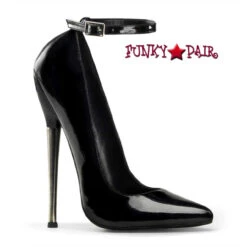 Devious Shoes | Dagger-12 Approximately 6.25 Inch solid brass high heel ankle strap pump