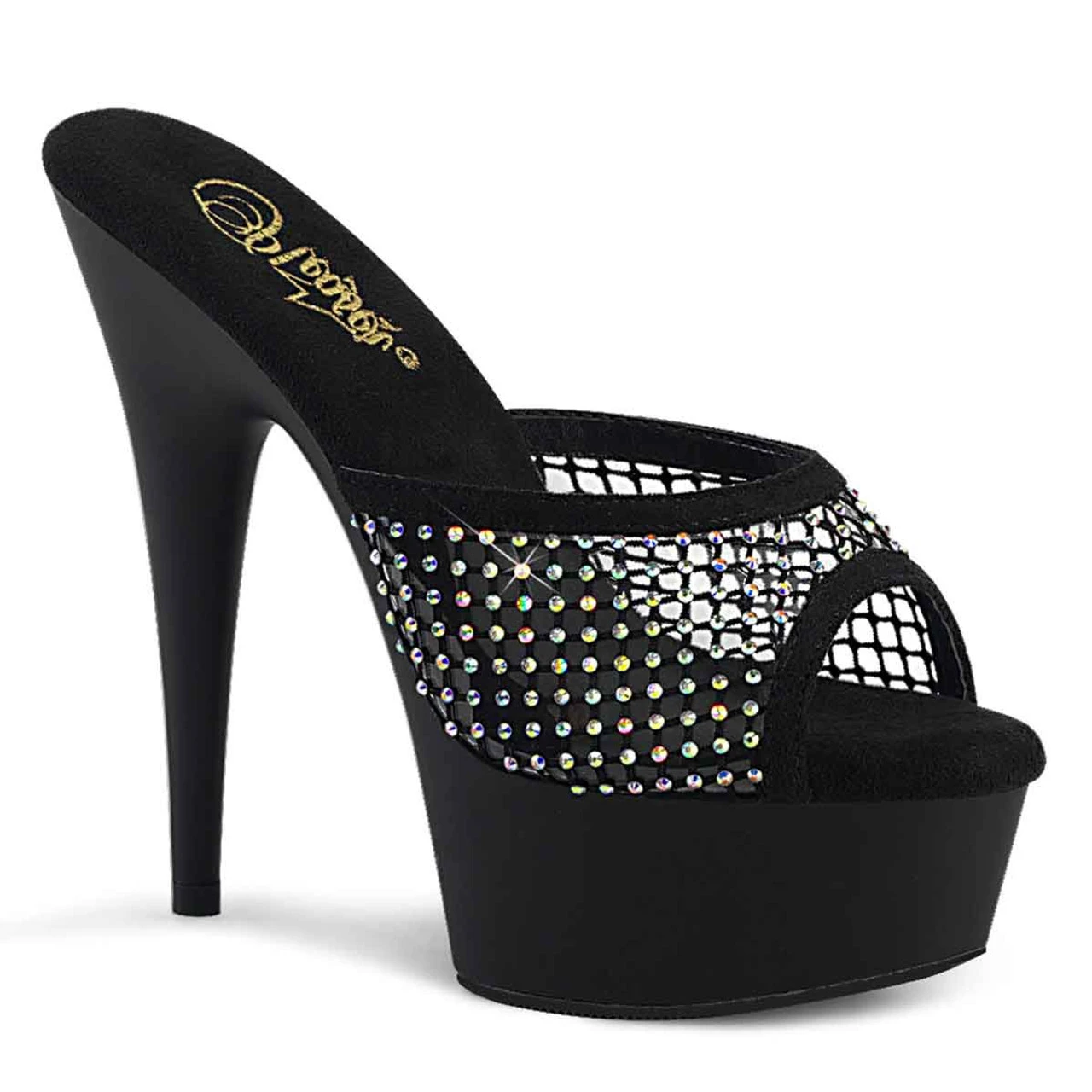 Peep Toe Slide Featuring Clear Upper w/AB Rhinestone Mesh Fabric Overlay Approximately 6″ (152mm) Heel, 1 3/4″ (45mm) Platform
