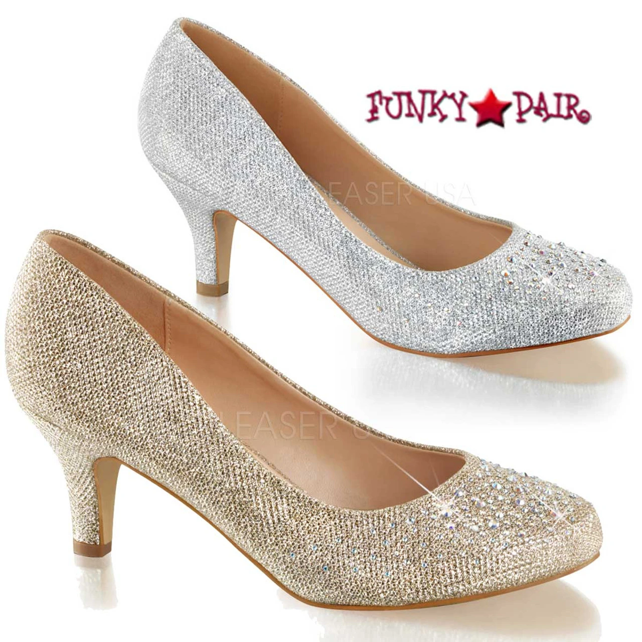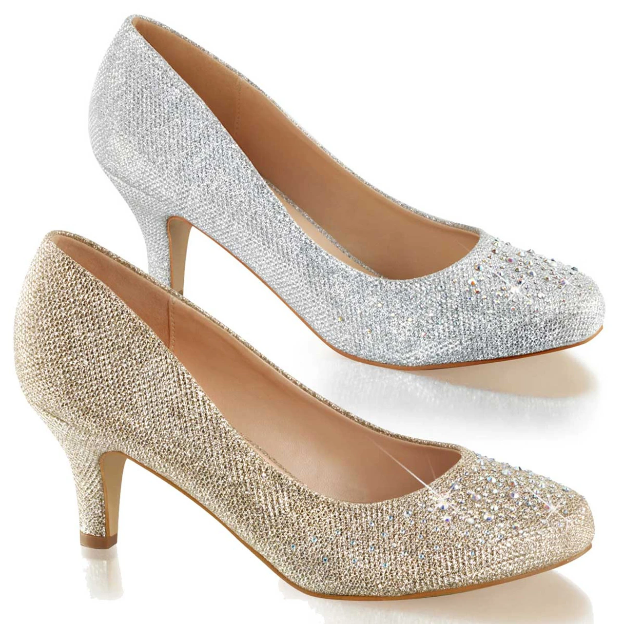 Doris-06 2 1/2″(6.25cm) Kitten Heel Pump with Silver Multi Rhinestone Embellishment at Toe