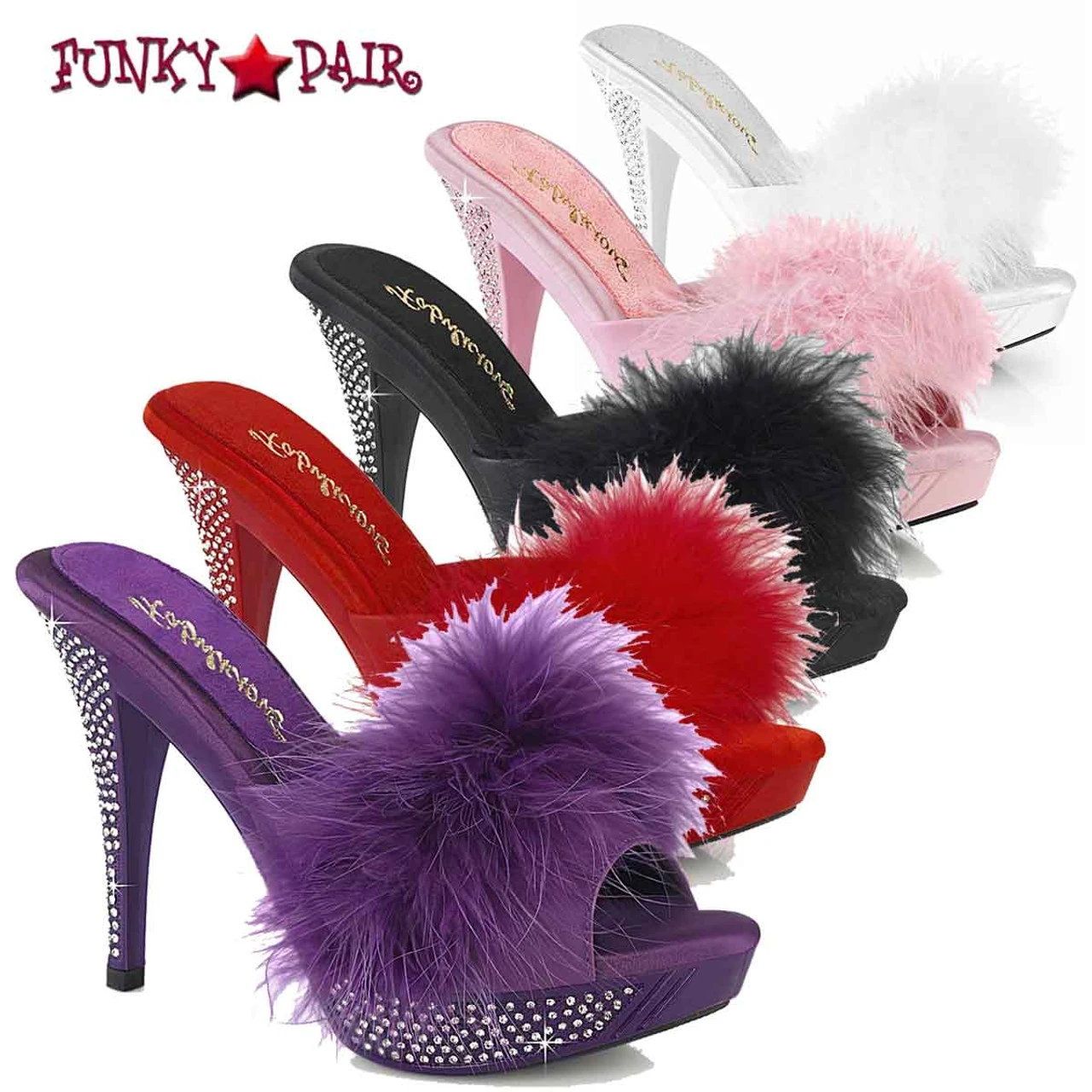 Approximately 4 1/2″ (114mm) Heel, 1″ (25mm) Platform Marabou Slipper Featuring Rhinestone Embellished Heel and Platform