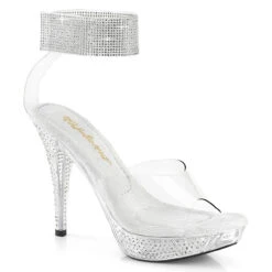 Sandal w/Rhinestone Ankle Cuff Featuring Rhinestone Embellished Heel and Platform. Approximately 4 1/2″ (114mm) Heel, 1″ (25mm) Platform