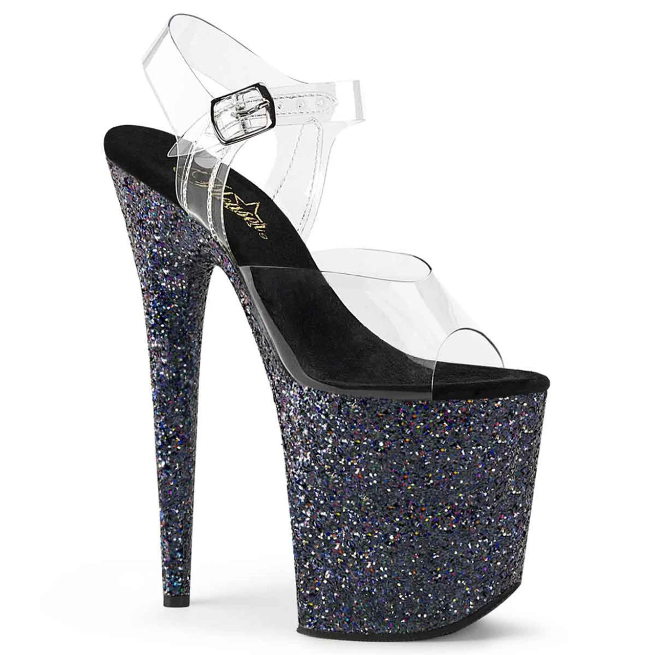 Pleaser Shoes Flamingo-808LG Approximately 8 Inch (20cm) Heel, 4 Inch (10cm) Platform Ankle Strap Sandal Featuring Holographic Glitters Covering the Entire Platform Bottom