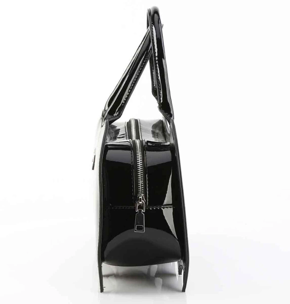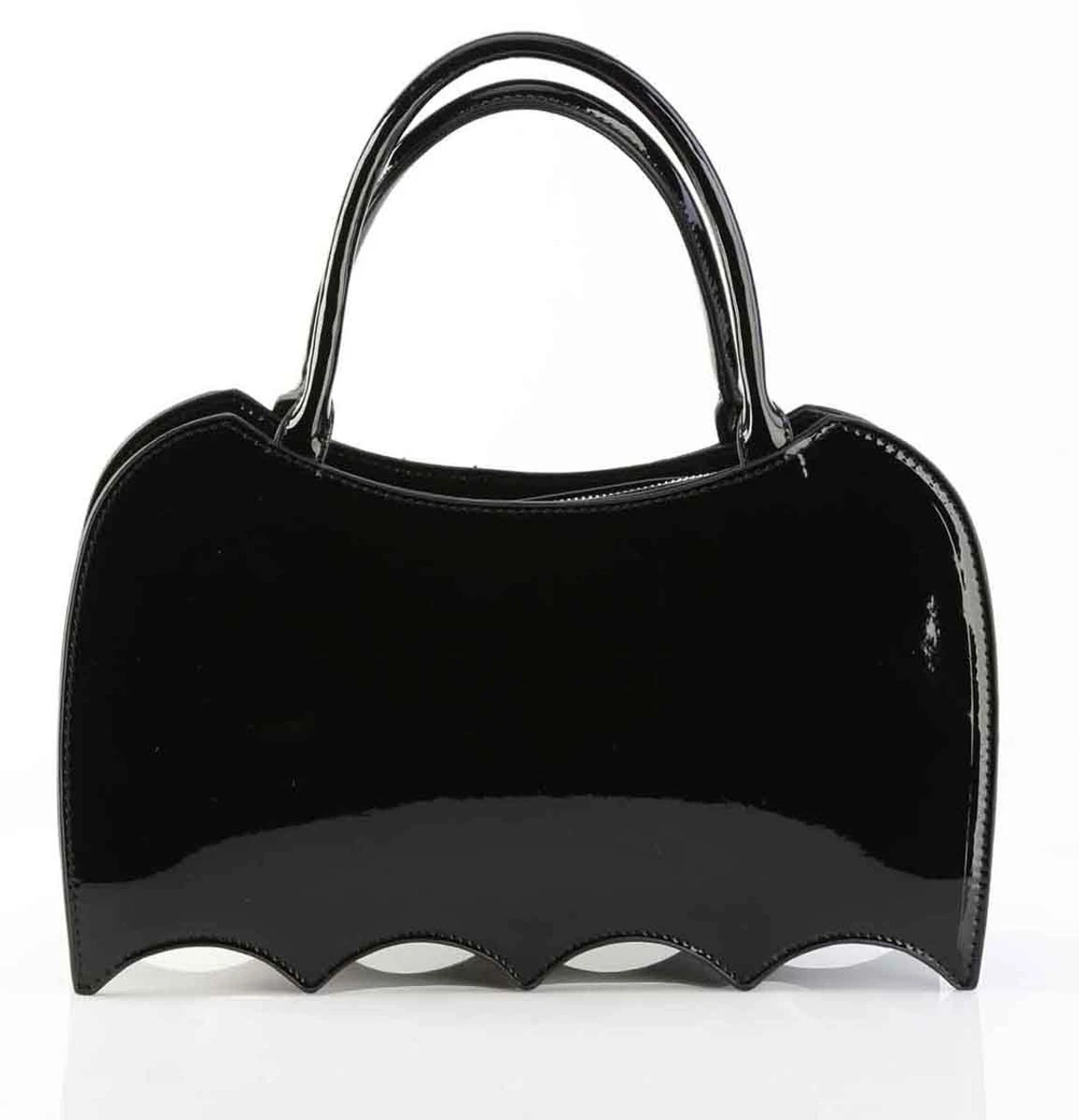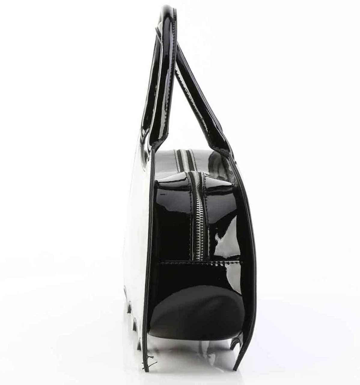 Patent Bat Shaped Handbag w/ Inner Zip Pocket Detail, Full Outside Zip Closure Approximate Size: 20x33x13 cm