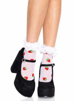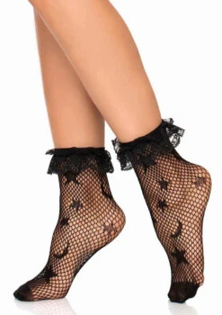 LA-3060, Micro Net Anklet Socks With Dotted Ruffle By Leg Avenue