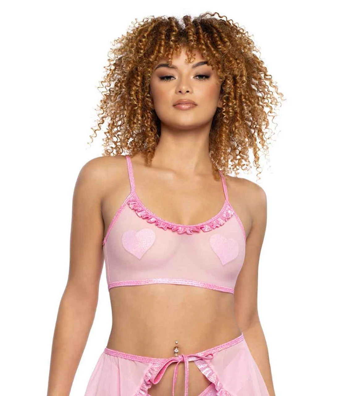 Mesh & Spectrum Front Ruffle Tank Top, Fabric: 85% NYLON 15% SPANDEX, Made in USA, Wash: Hand Wash Cold