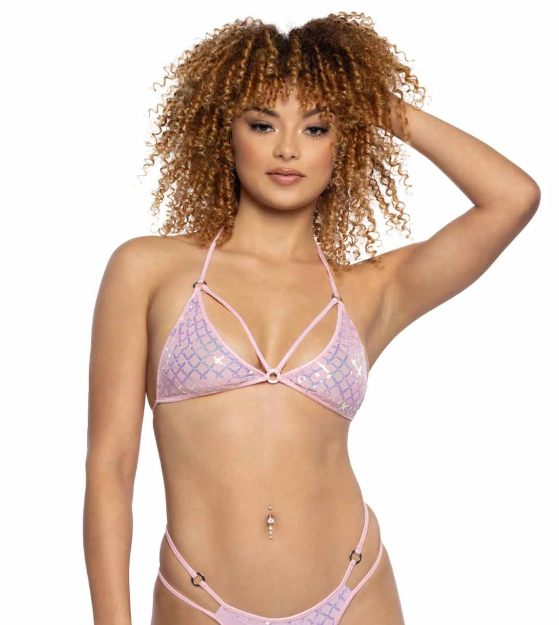 Diamond Sequin Stretch Mesh Triangle Top, MEDIUM, 90% POLYESTER 10% SPANDEX, Made in USA, Wash: Hand Wash Cold