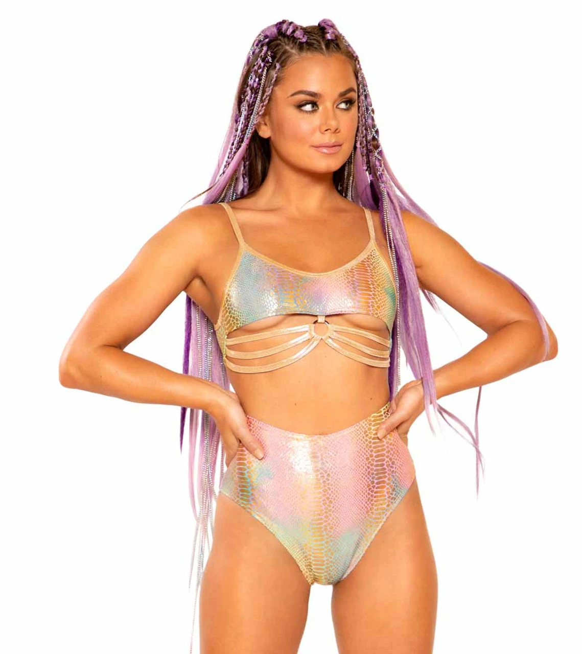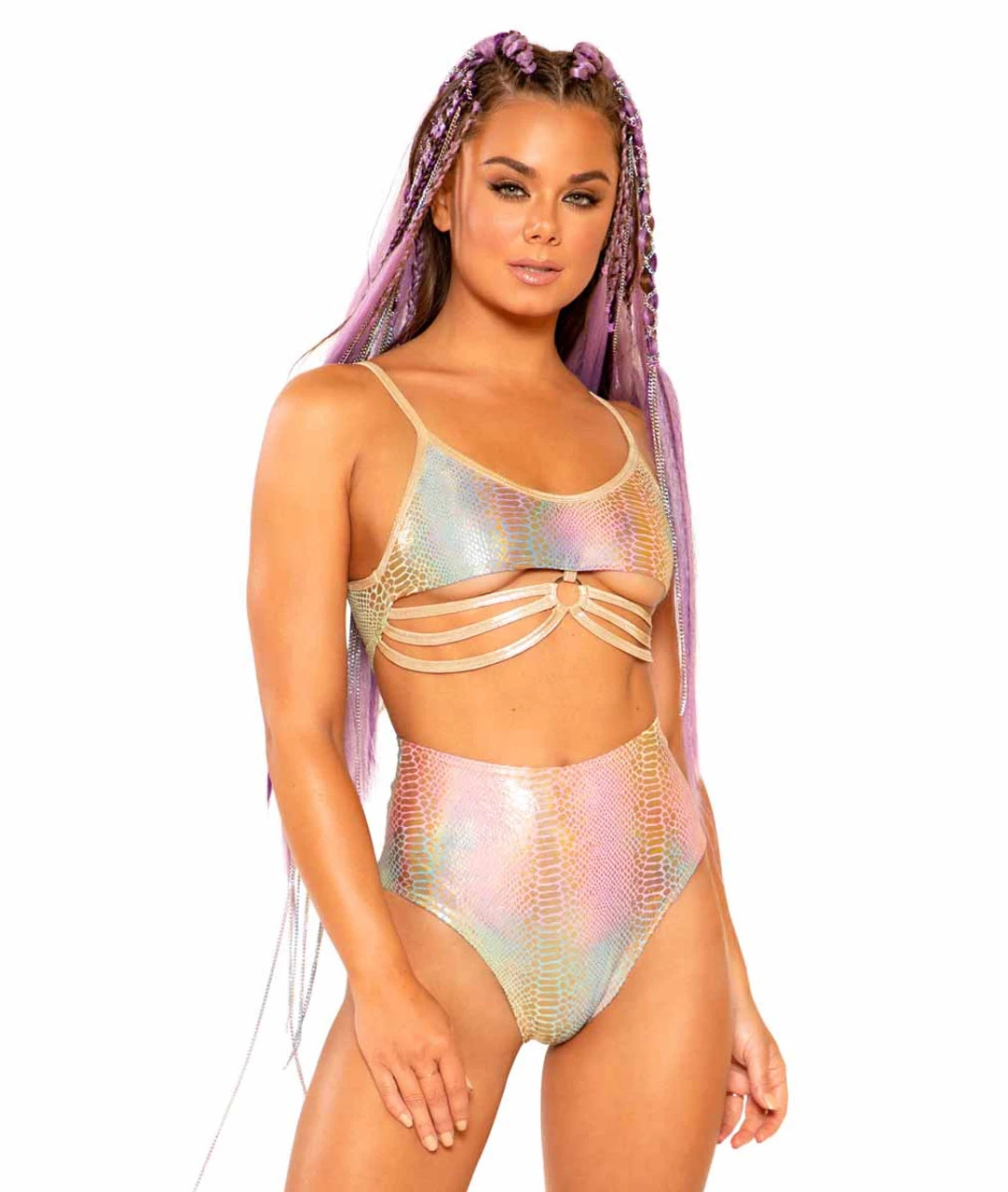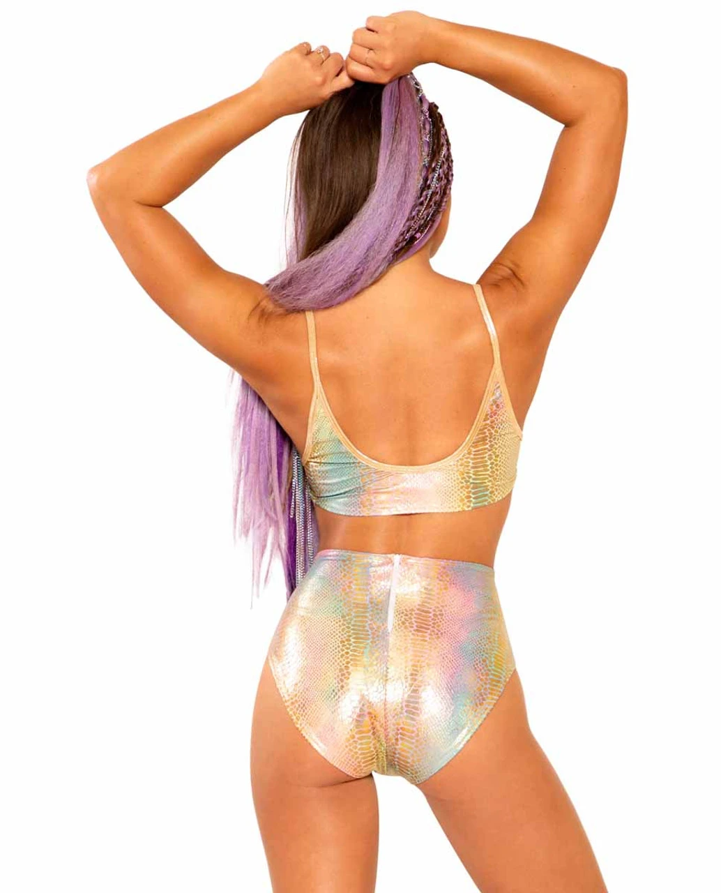 High-Cut High-Waist Short, Stretch Fabric. Fabric: 85% NYLON 15% SPANDEX – TOP SOLD SEPARATELY