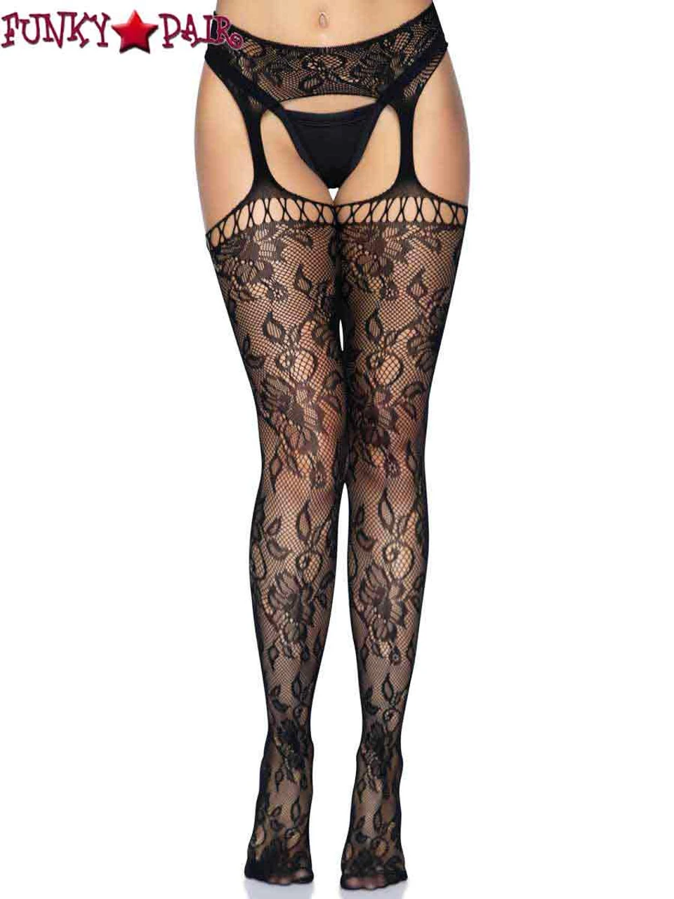 Gardenia lace stockings with net top and attached garter belt. One Size.