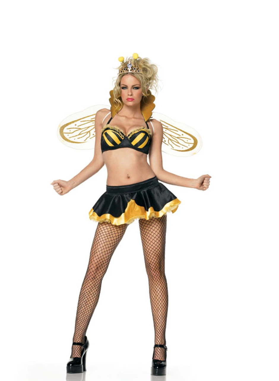 4pc. Queen Bee Costume, includes crown, collared underwired bra top, wings and petticoat skirt