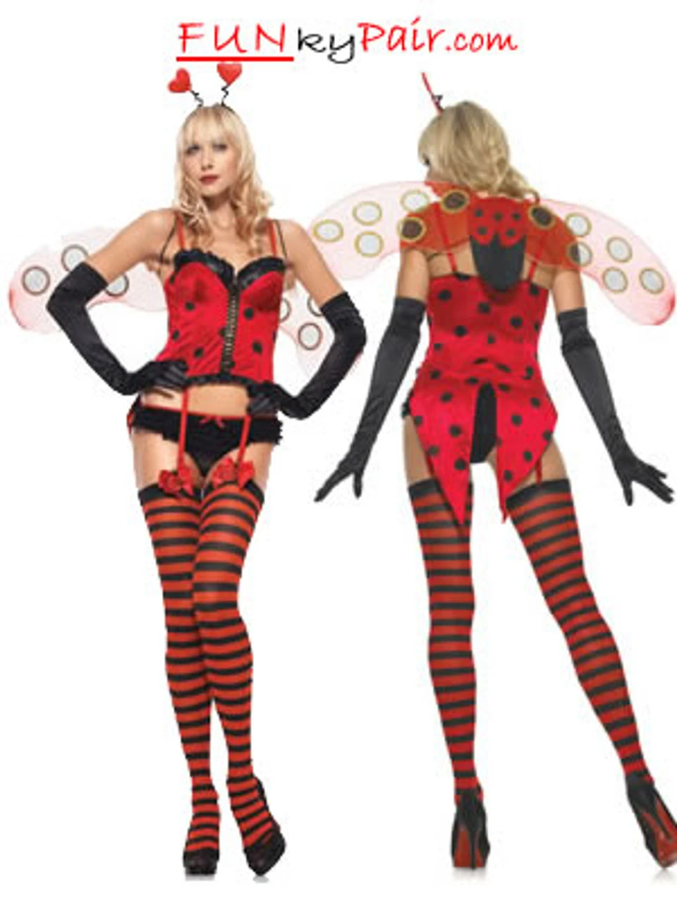 Sweetheart Bug Costume, includes underwire bustier with attached garters and tuxedo tails, ruffled panties, wings and head band (Stocking SM-6005 and Gloves 16B sold separately)