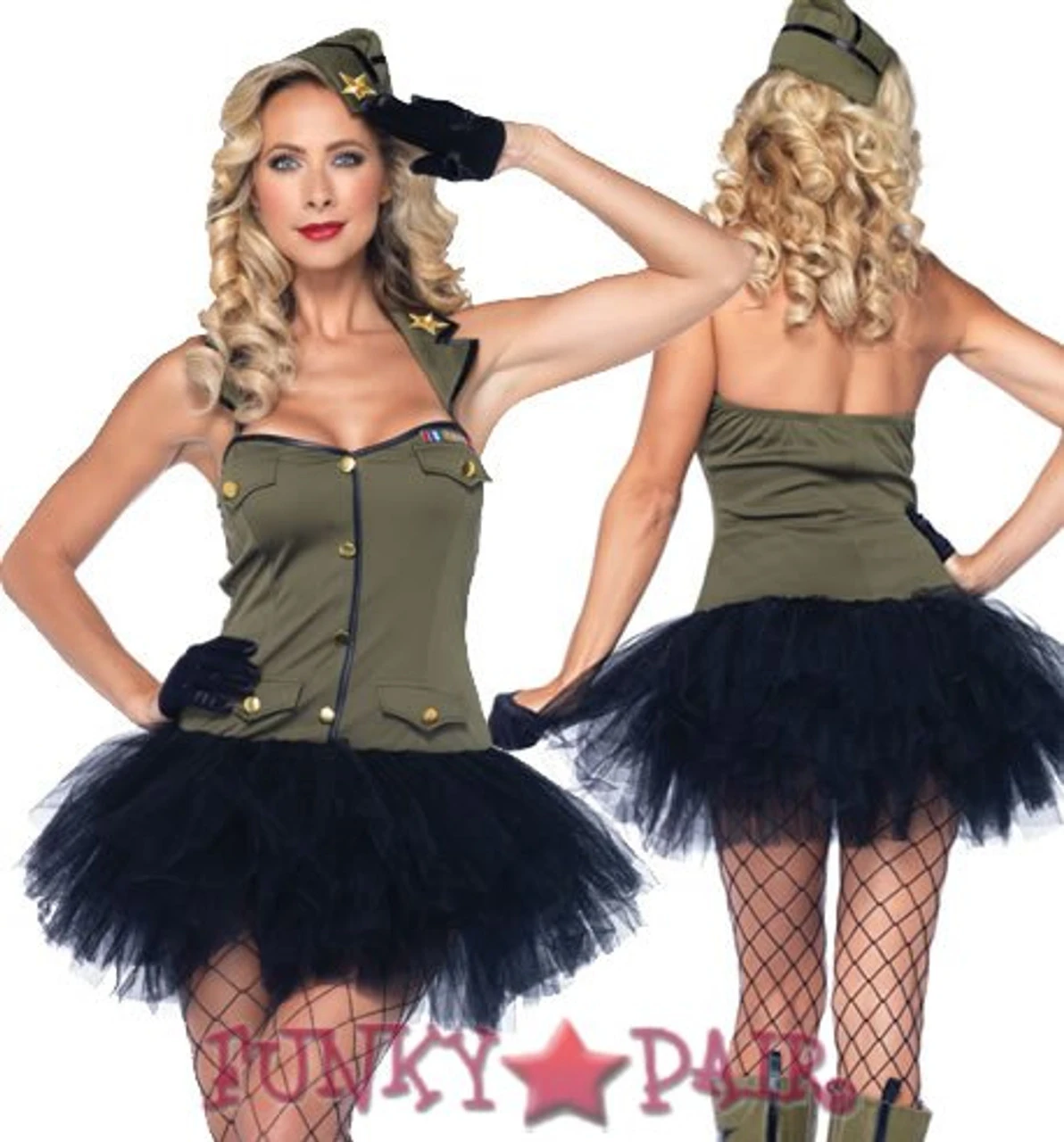 2 pc. Army Girl costume Includes tutu halter dress with embroidered badge accents and matching hat