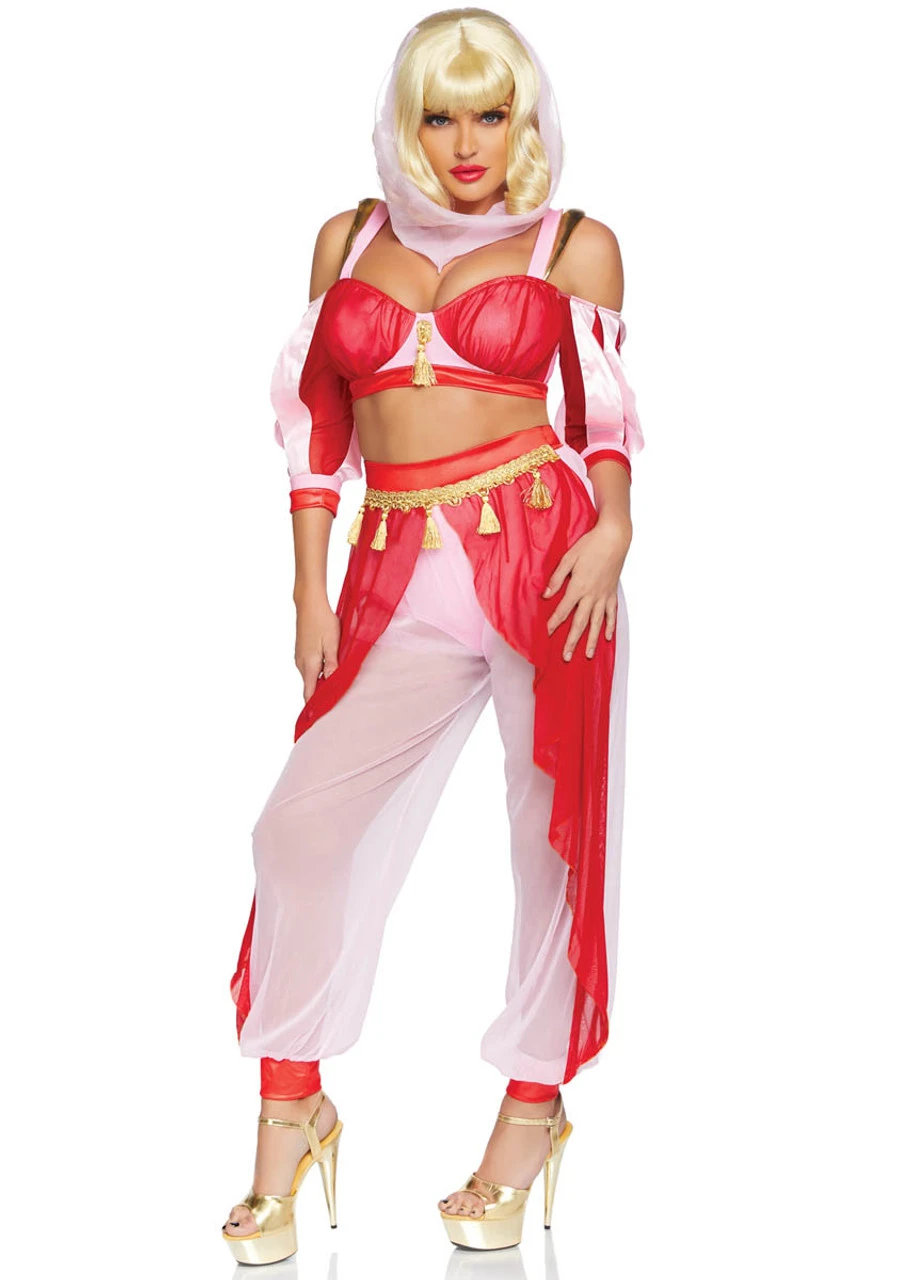 3 PC Dreamy Genie, includes bra top, layered harem pants with built in panty, and matching veil.