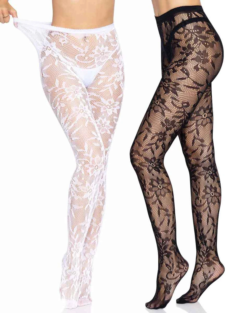 LA-9727, Seamless Chantilly Floral Lace Tights By Leg Avenue