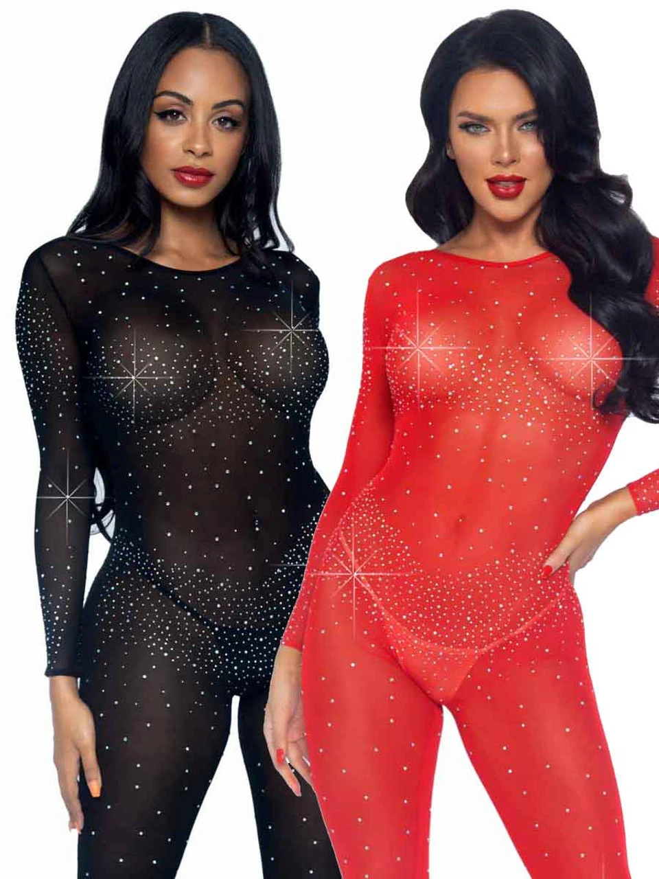 Sheer rhinestone catsuit.