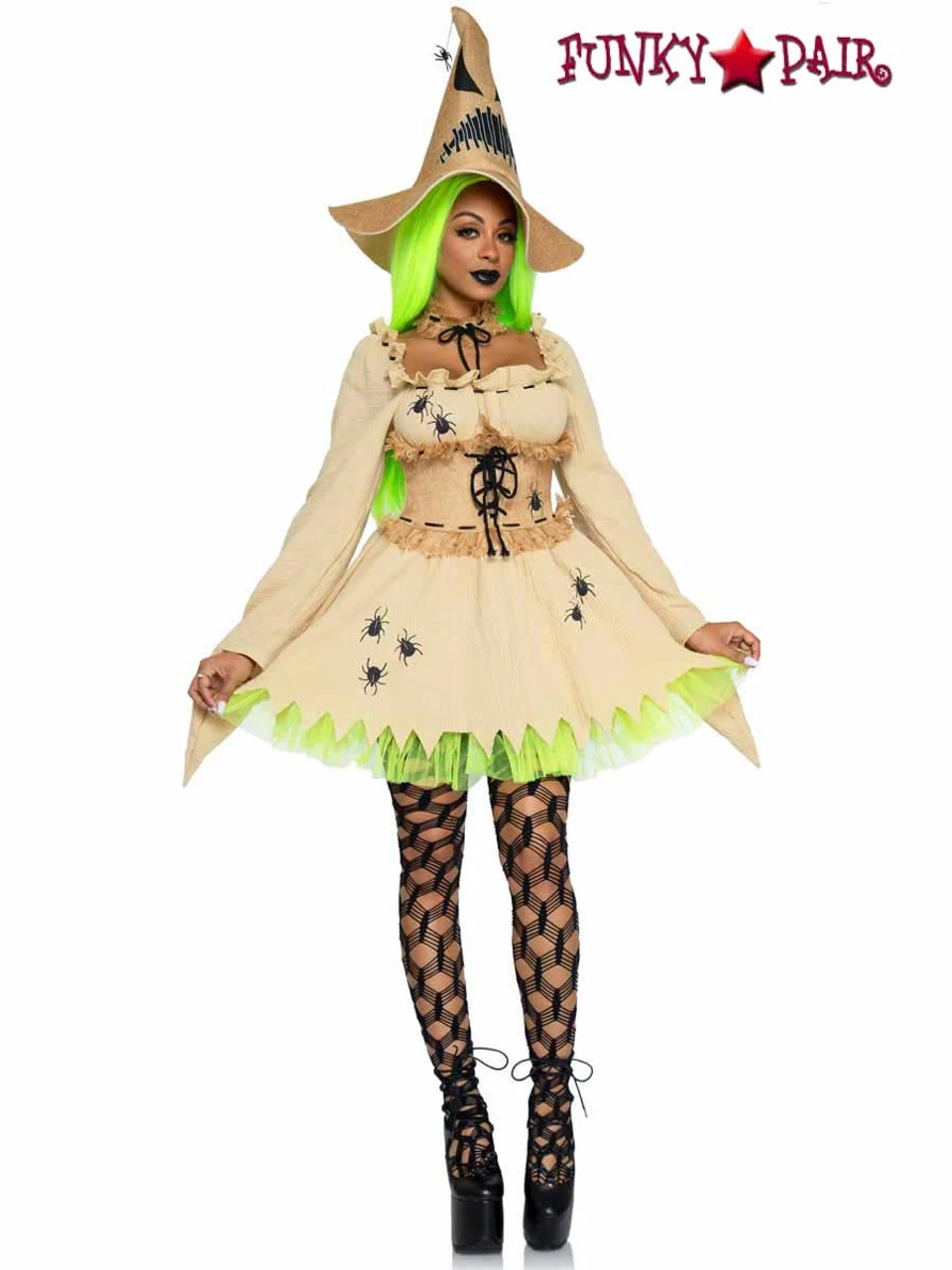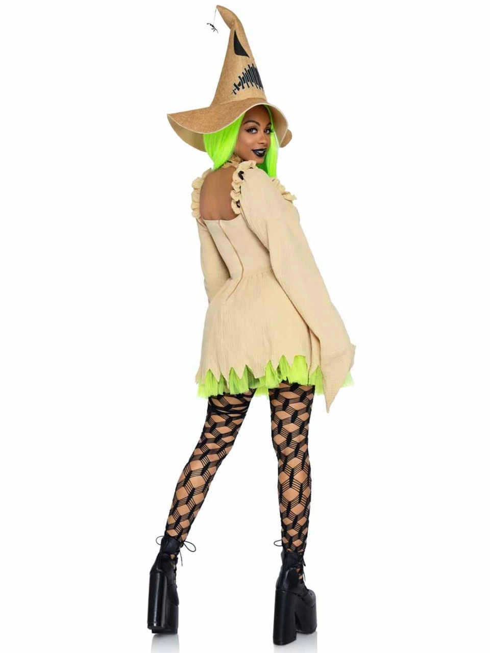 3 PC Bugged Out Baddie, includes dress with waist cincher detail and gloved sleeve, choker, and hat with spider accent.