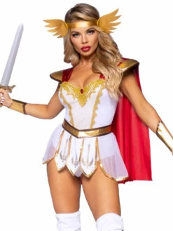 4 PC Power Princess, includes bodysuit with molded shoulders and attached cape, panel skirt, wrist cuffs, and wing head piece.
