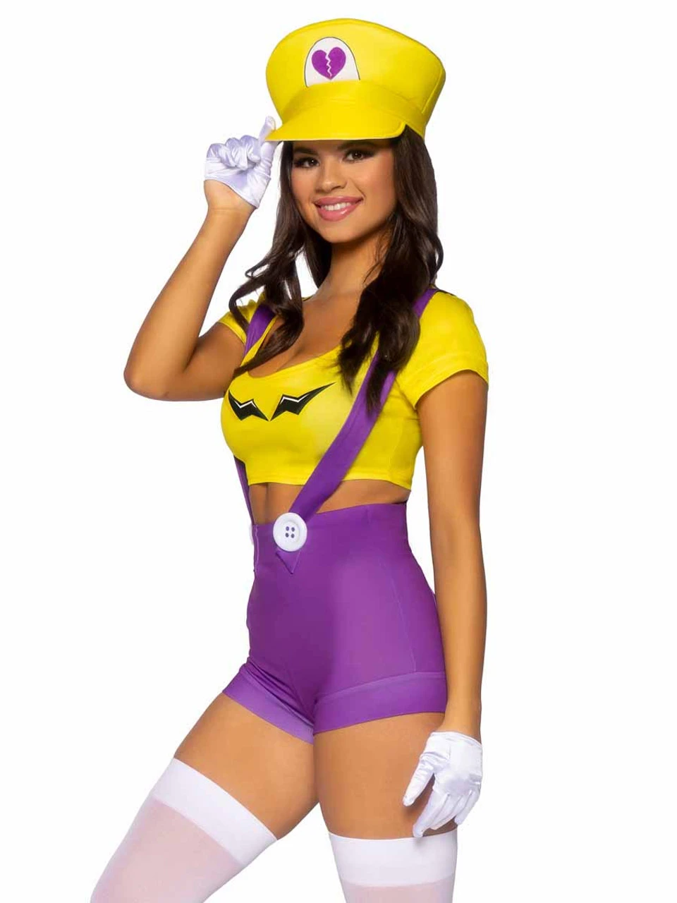 3 PC Gamer Villain, includes character crop top, suspender shorts with icon accents, and hat.