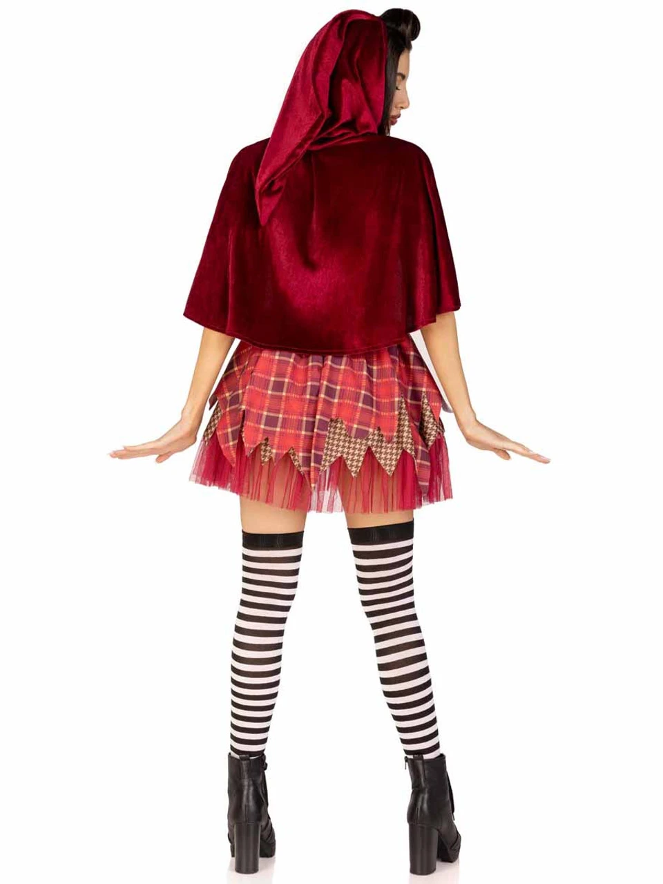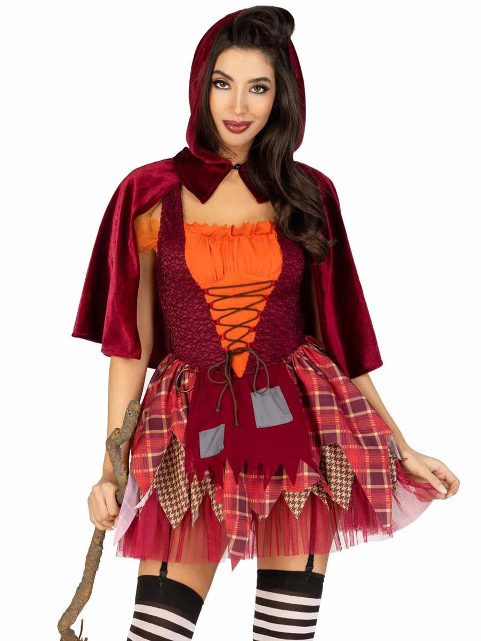 2 PC Salem Sweetie, includes lace up patchwork peasant dress with tattered garter skirt and collared caplet with pointed hood.