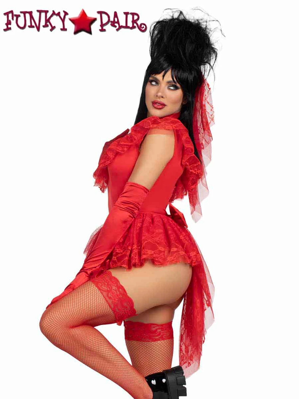 3 PC Beetle Babe, includes lace ruffle garter bodysuit, pin-on bustle bow, and veil.
