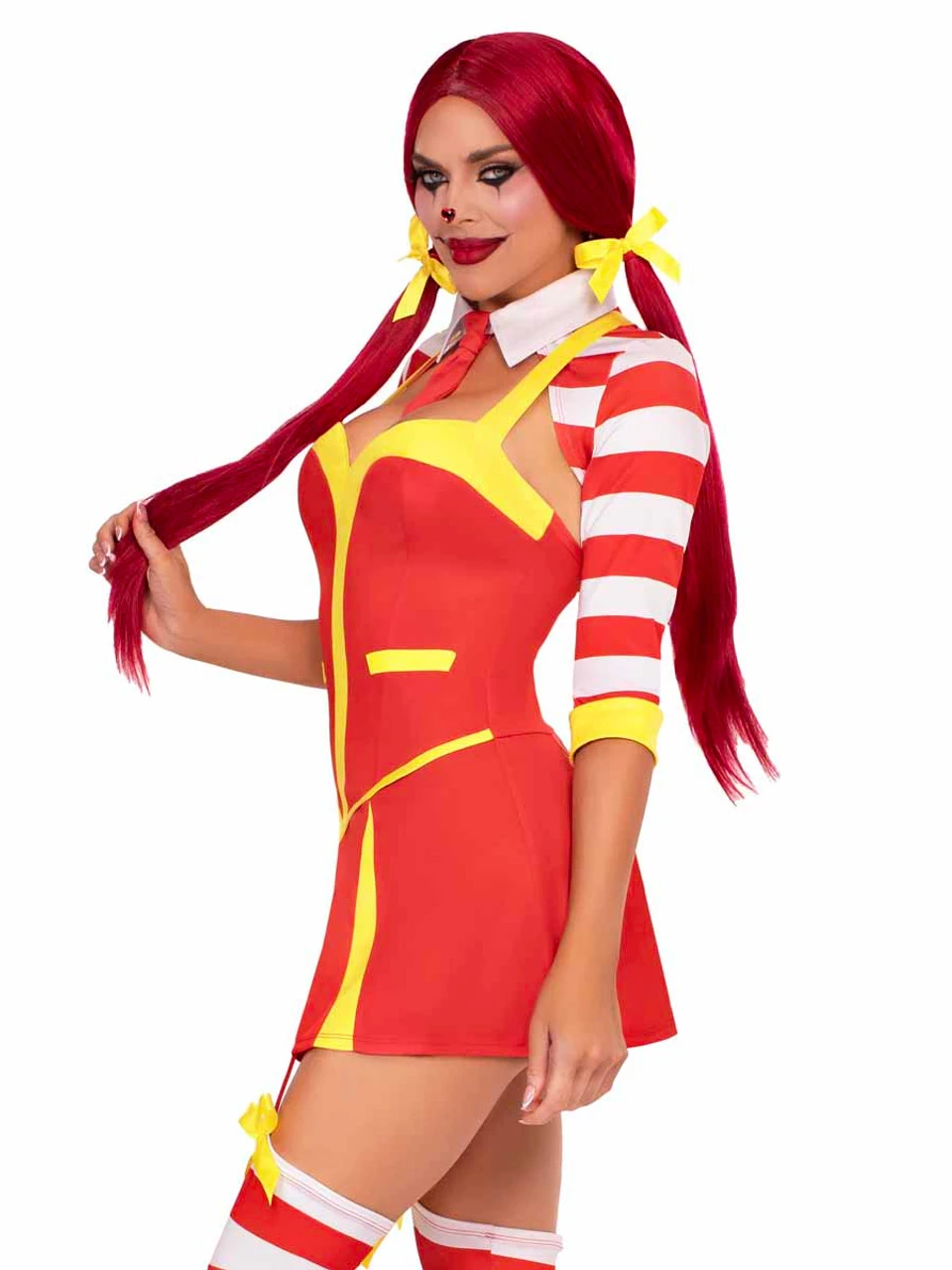Includes Garter Dress with Attached Footless Thigh Highs, Collared Shrug, and Hair Bows