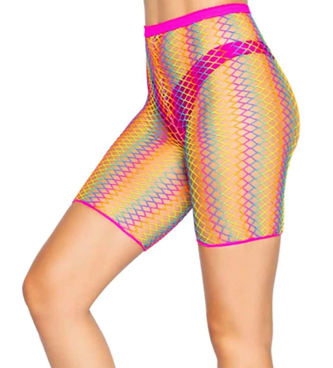 Ombre rainbow woven net biker shorts. (Panty not included)