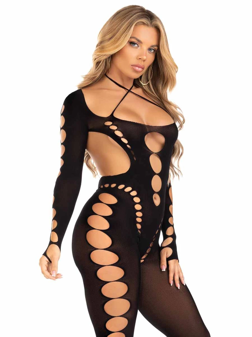Seamless opaque cut-out footless bodystocking. One Size
