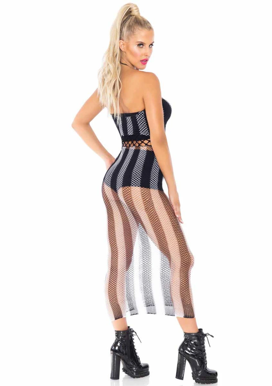 This Striped Fishnet Halter Dress is your ticket to looking dancefloor-ready! Perfect for the daring dancer in you, it’s sure to help you shake it with its chic mesh fabric and bold stripes.