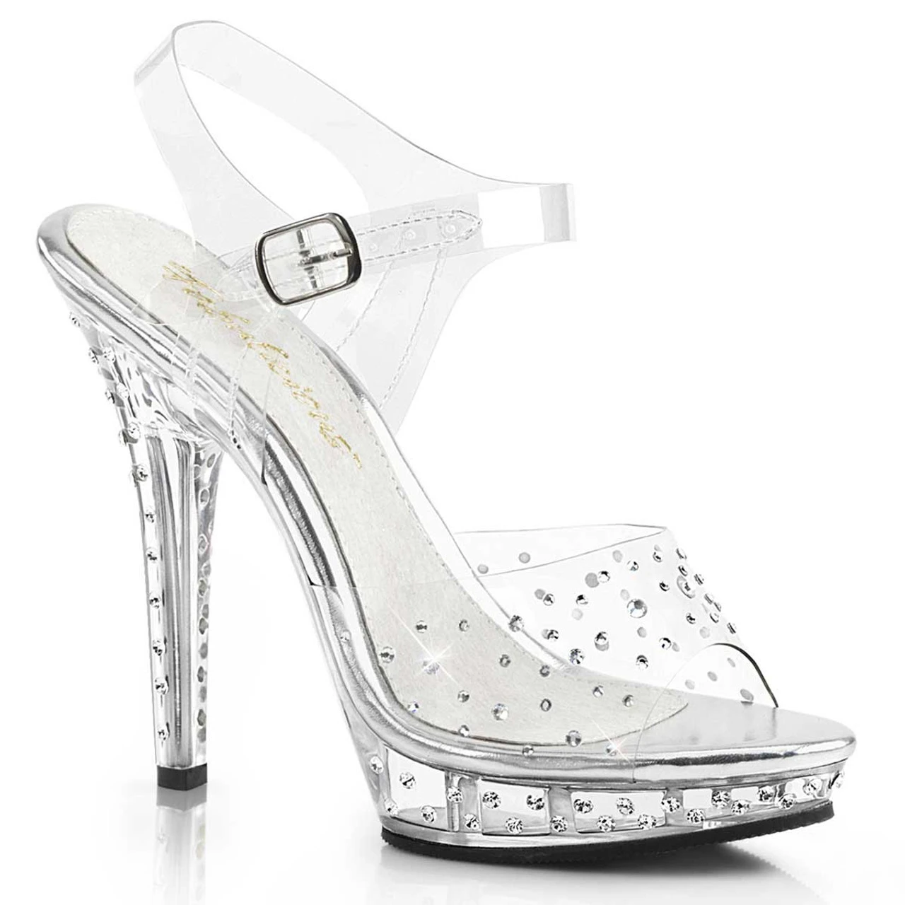 Lip-108RS Approximately 5 inch high heel with ankle strap featuring rhinestones embellishment on strap and platform | Brand: Fabulicious