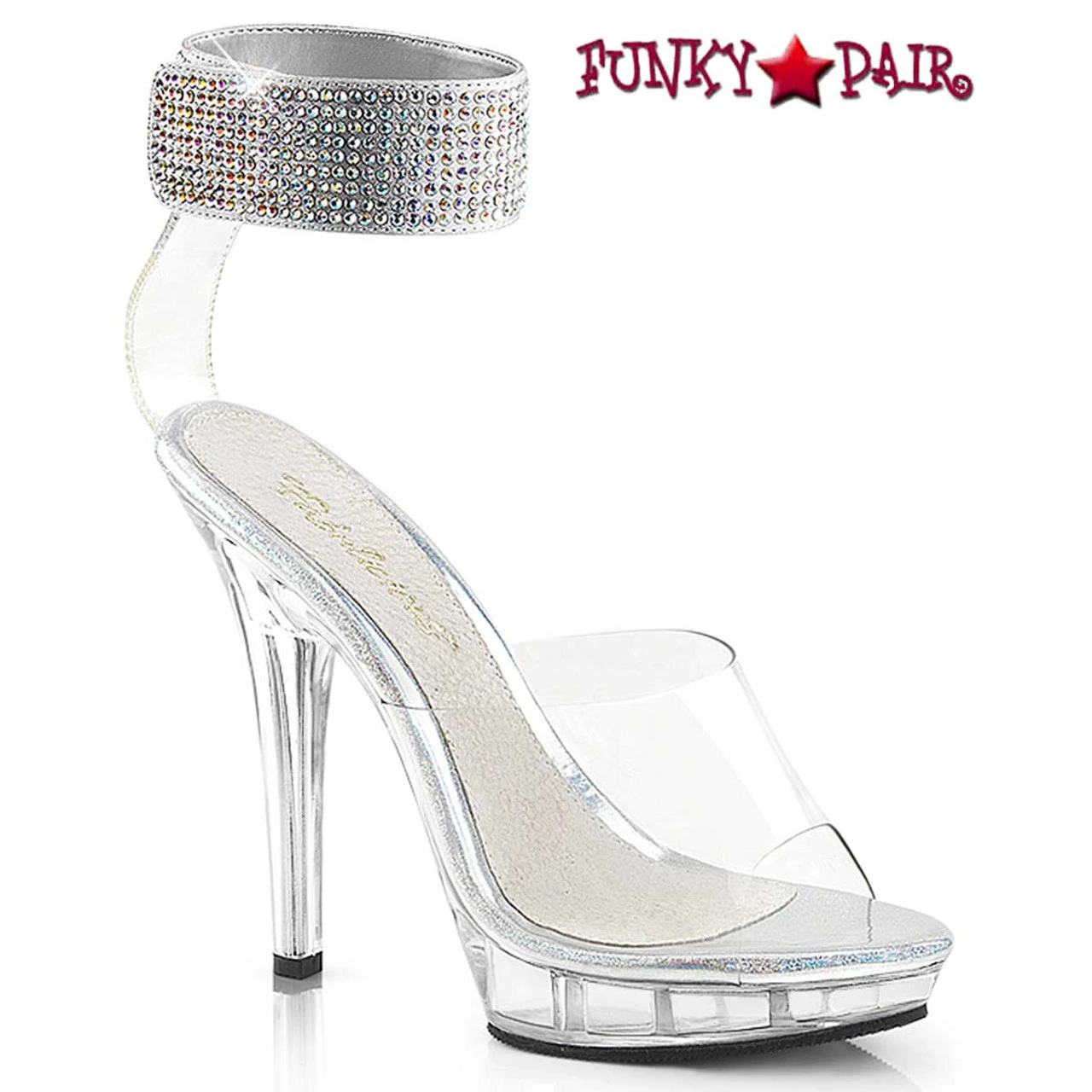 Lip-142 Approximately 5 inch high heel featuring wide ankle cuff fully cover with rhinestones | Brand: Fabulicious