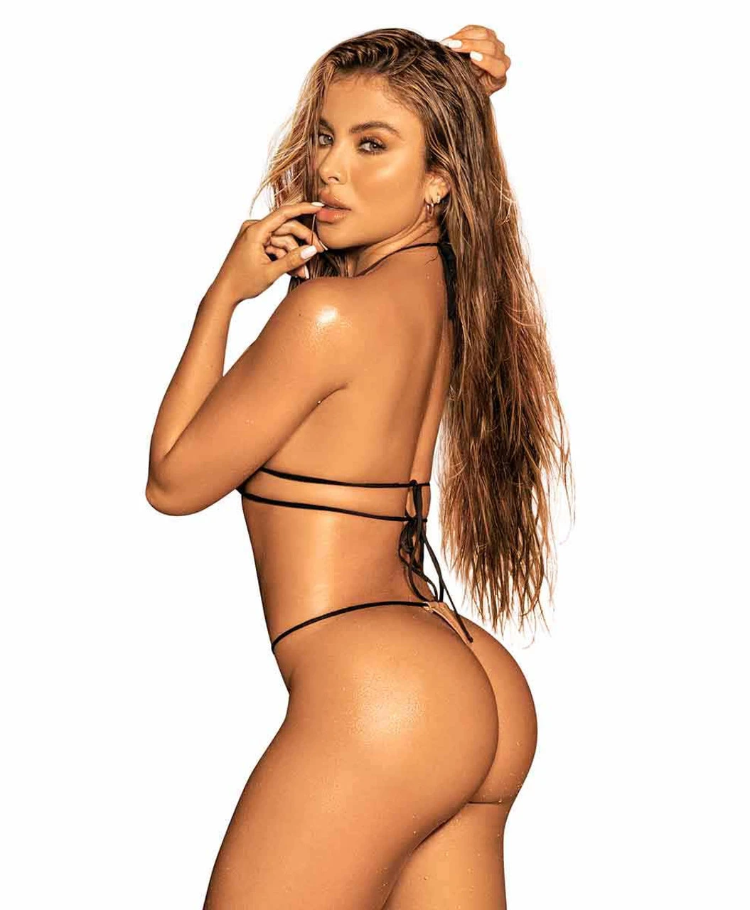1PC Vinyl monokini with contrast straps,mini hoop detailing, and adjustable back straps.