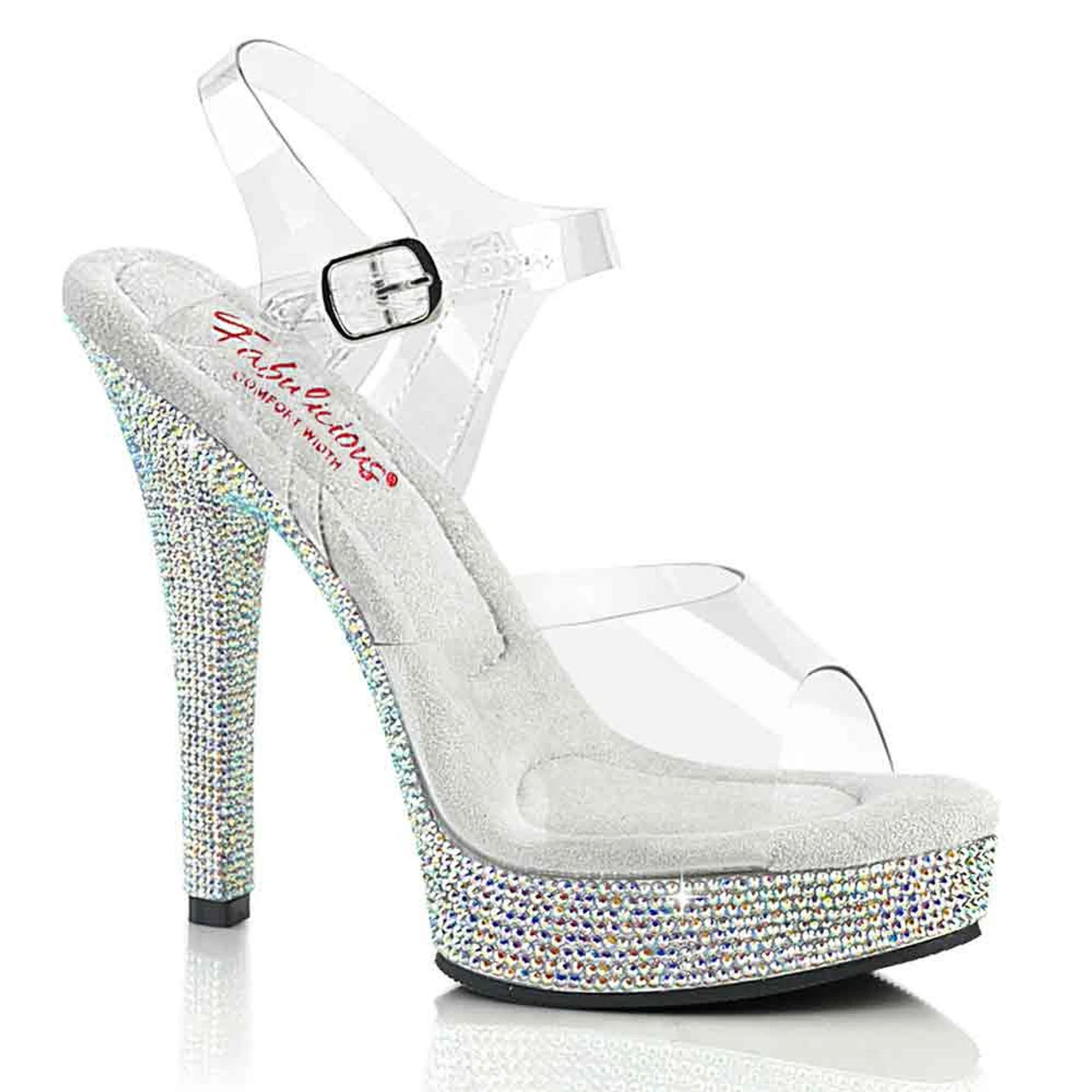 Comfort Width Ankle Strap Sandal Featuring Rhinestones Encrusted All-Over the Entire Platform Bottom approximately 5″ (132mm) Heel, 7/8″ (25mm) Platform