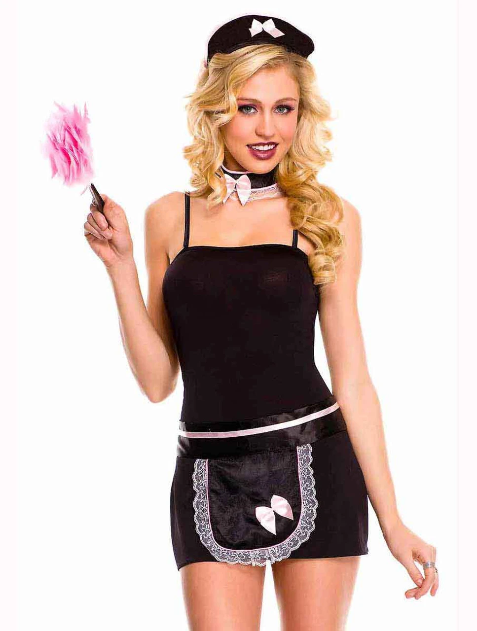 4 PC. French maid accessory kit Includes: headpiece, choker, apron and feather duster (Dress not included)