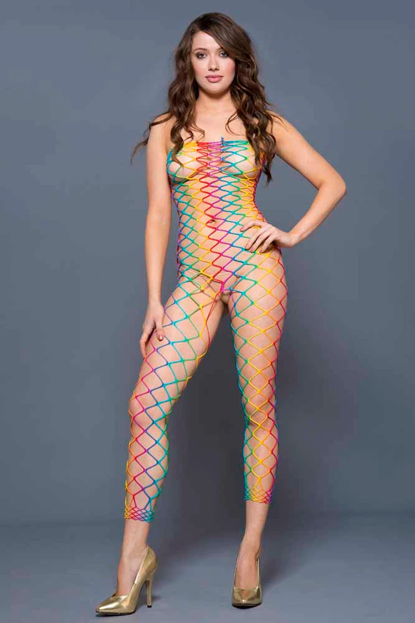 Strapless big diamond net rainbow footless bodystocking (G-string not included)