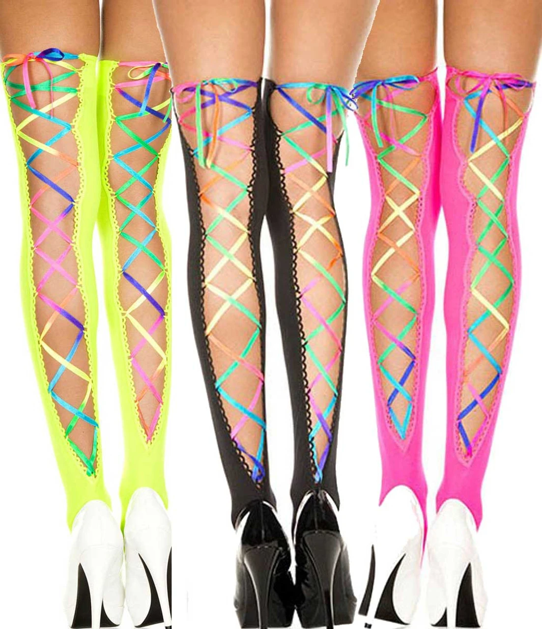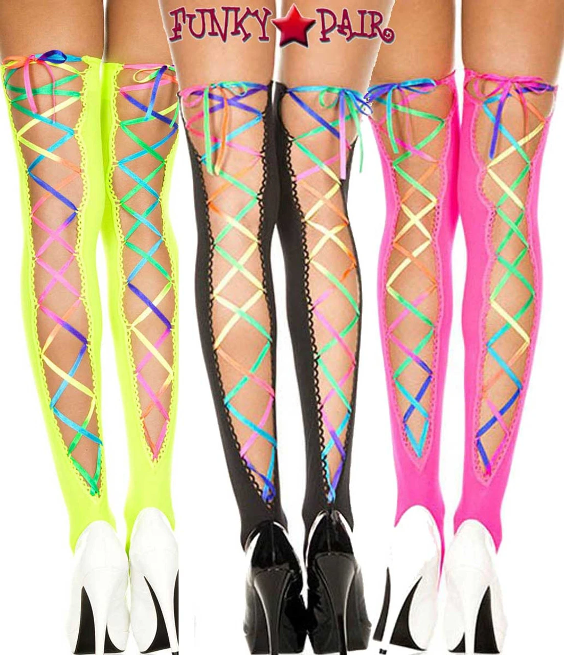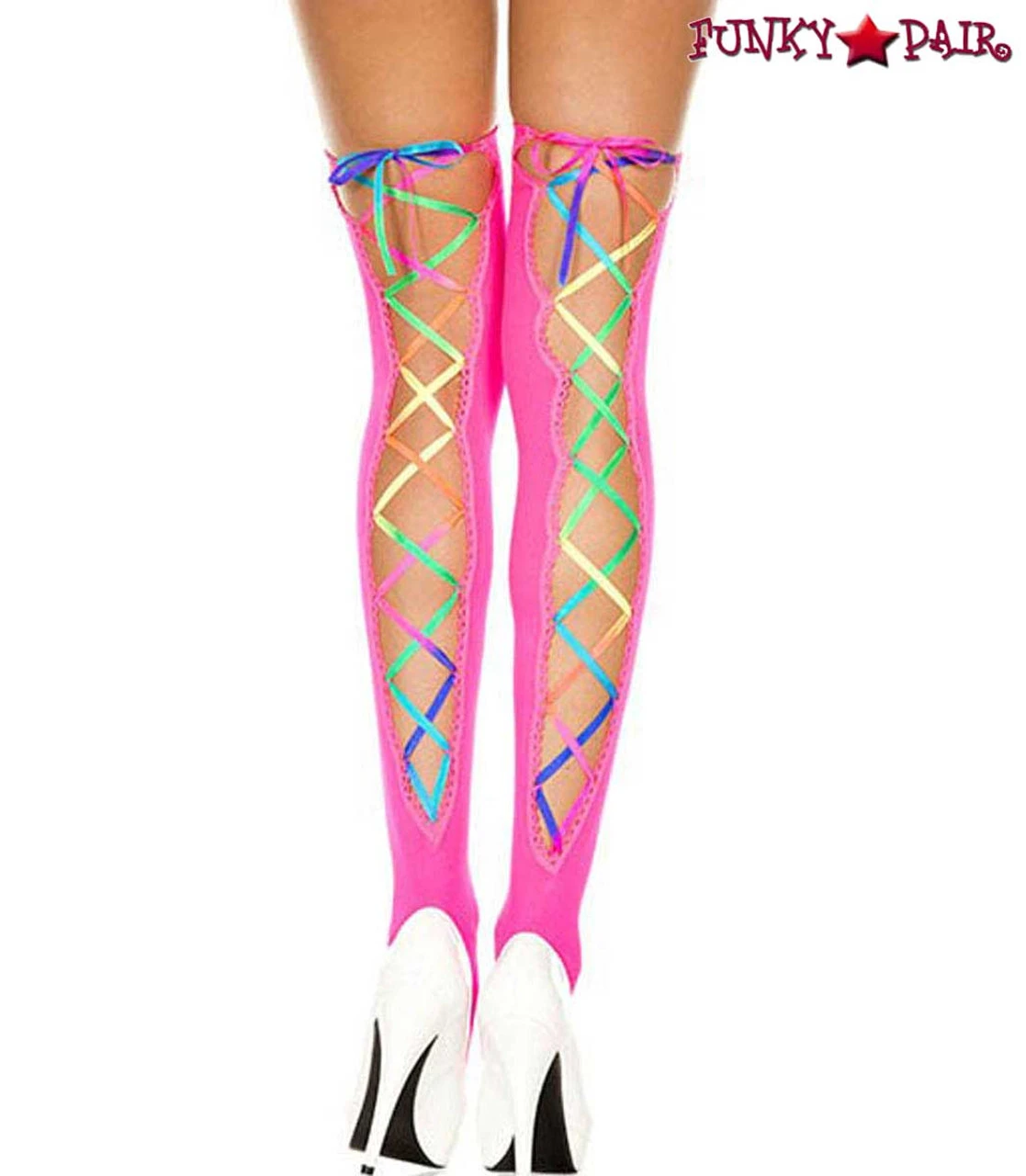 Rainbow ribbon lacing opaque stockings by Music Legs ML-4210