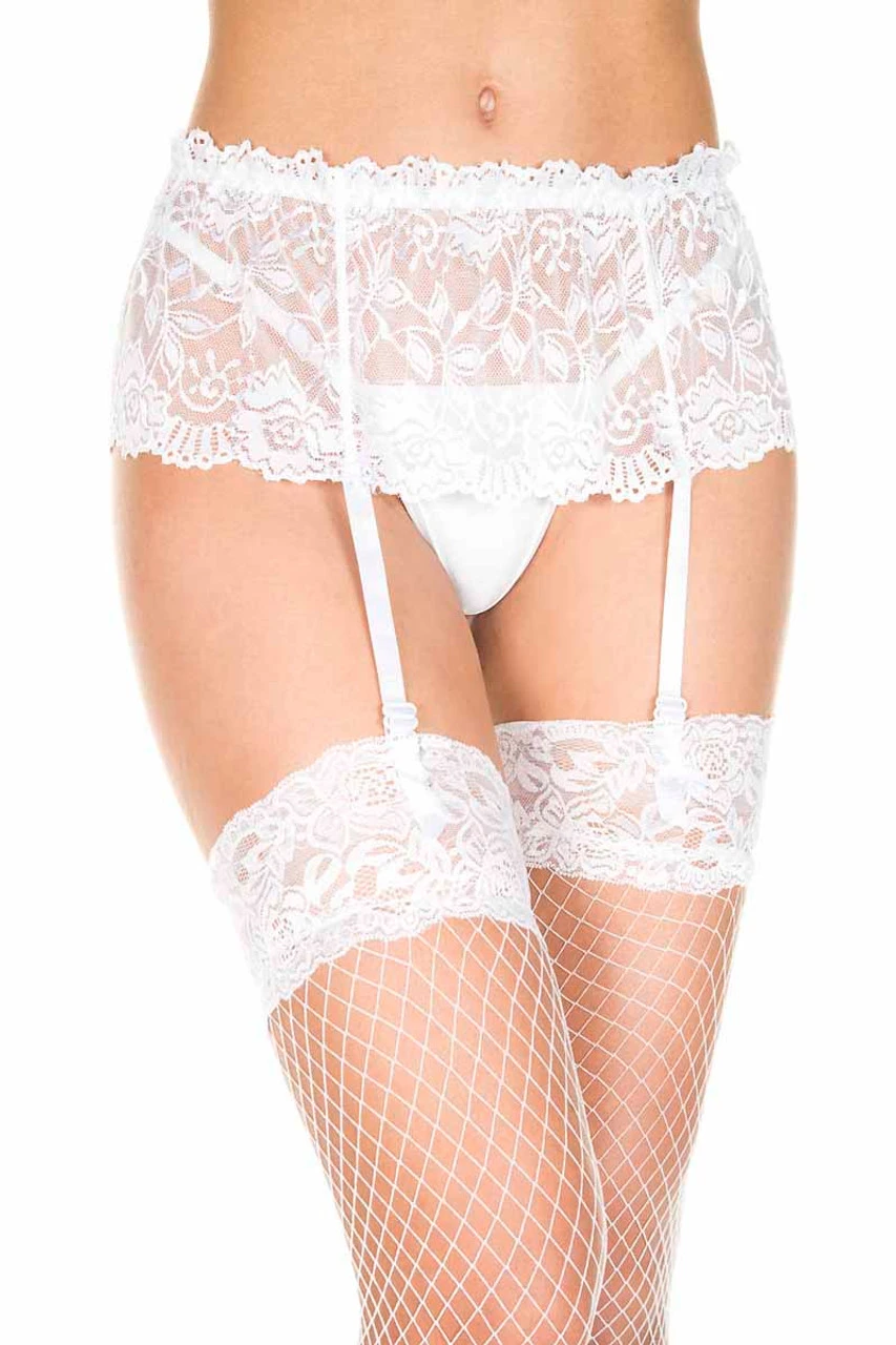 Lace garterbelt with satin bows and matching g-string by Music Legs ML-7706.