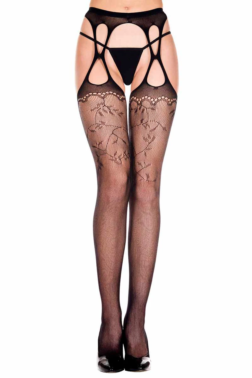 Lace pattern fishnet X suspender pantyhose by Music Legs ML-911.