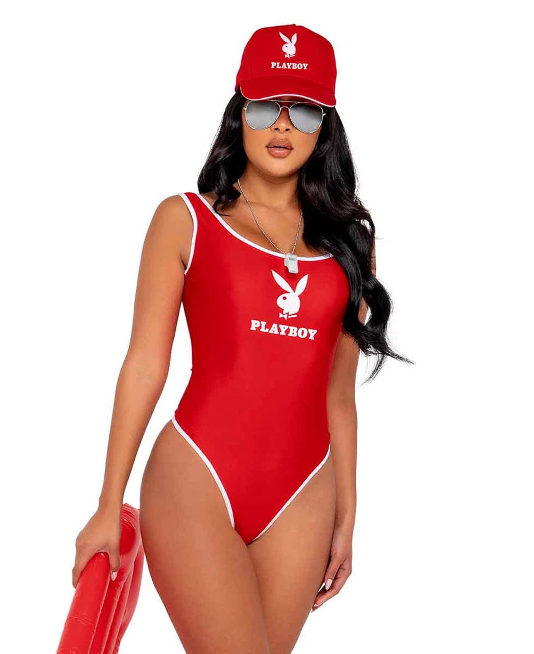 3 PC Playboy Beach Patrol includes: Bodysuit with Playboy Bunny Print, Cap with Playboy Print, & Whistle Glasses and floater not included
