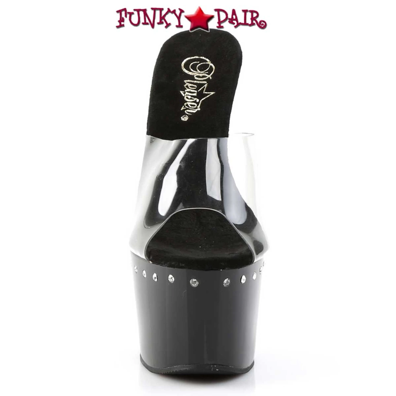 Pleaser Shoes Adore-701LS Approximately 7 inch high heel slide feature 1 line rhinestones on 2.75 inch platform and on heel