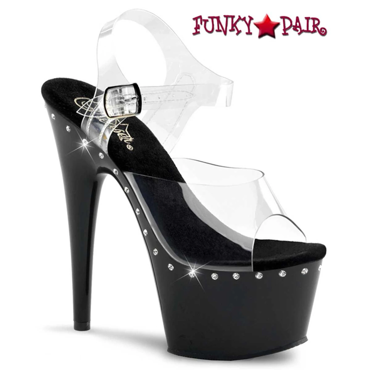 Pleaser Shoes Adore-708LS Approximately 7 Inch Heel Ankle Strap Sandal Featuring 1 Line Rhinestones on Platform and Heel