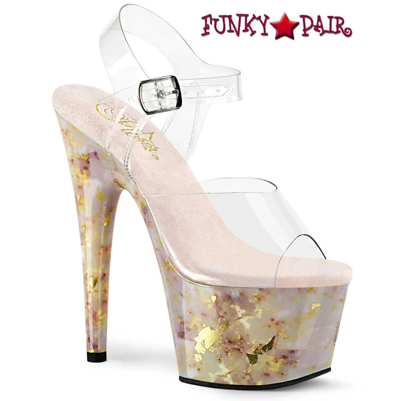 Ankle Strap Sandal Featuring Marble Effect Printed Platform Bottom. Approximately 7″ (178mm) Heel, 2 3/4″ (70mm) Platform