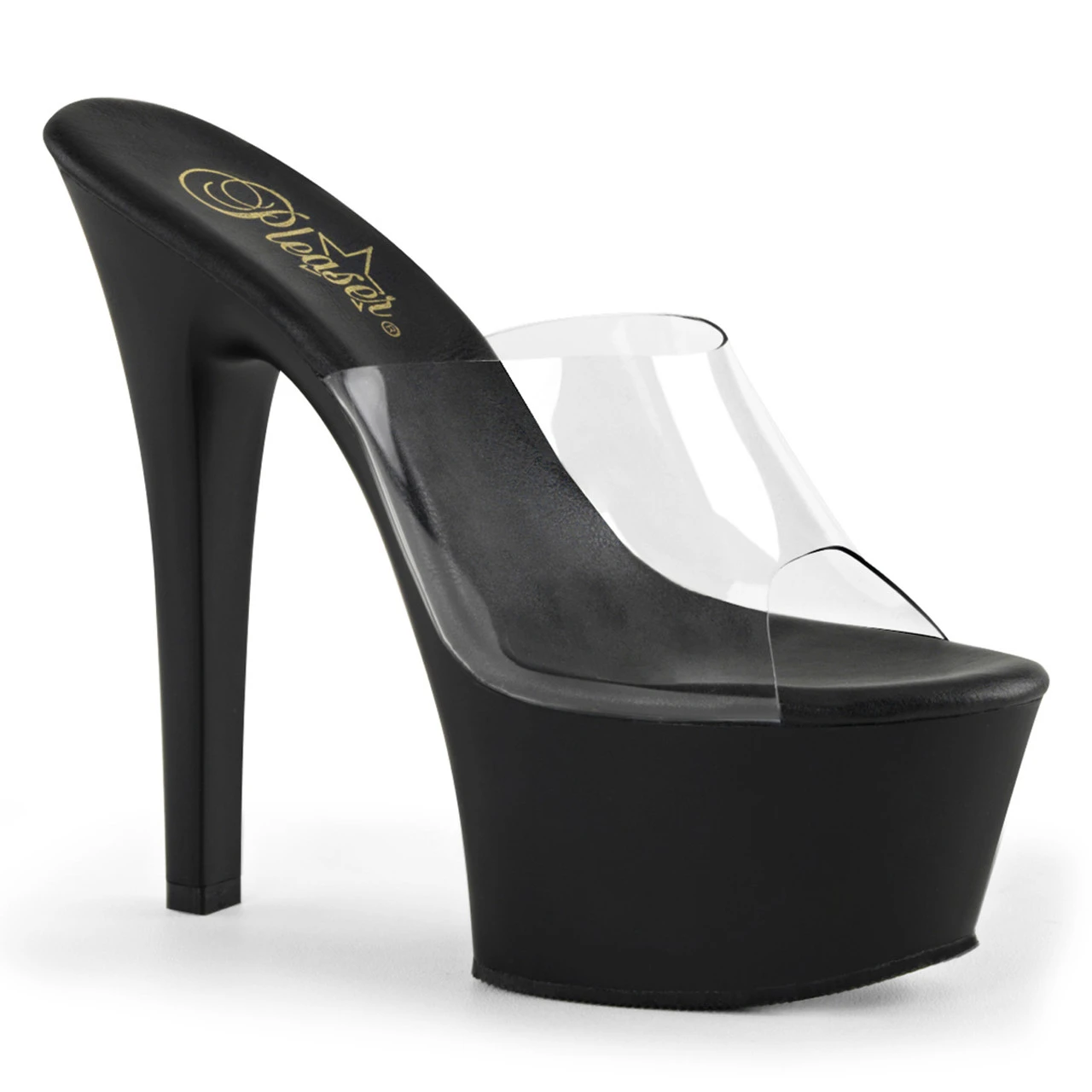 Pleaser Shoes Aspire-601 Approximately 6 Inch (15.25cm) Heel, 2 1/4 Inch (6cm) Platform Slide Featuring Vegan Leather Insole. Price Range: $39.95 – $52.95